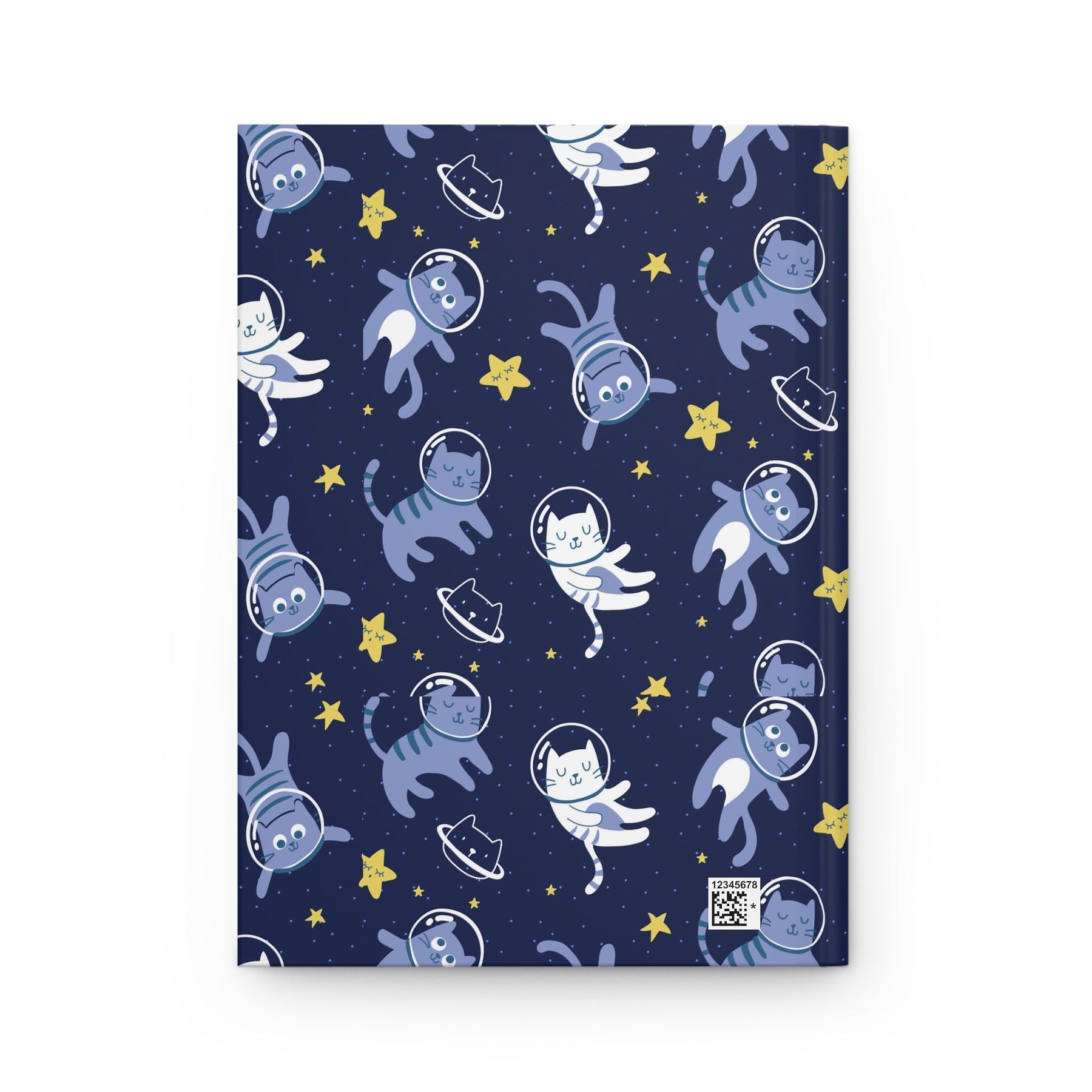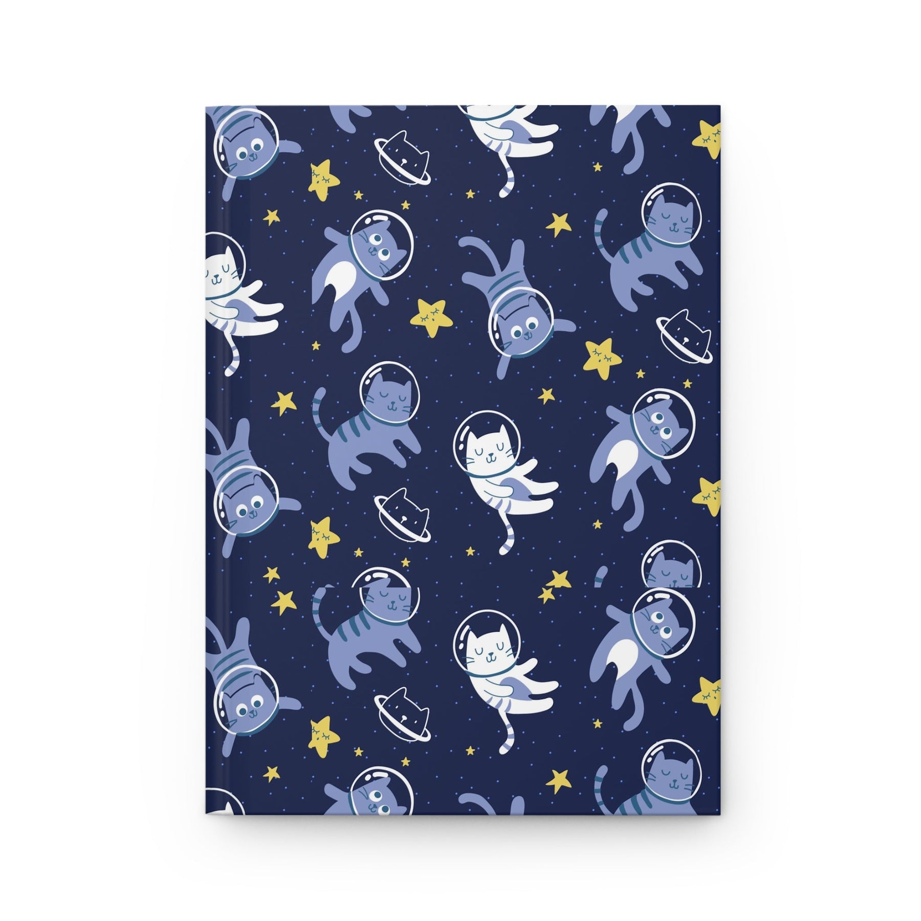 Perfectly bound for a lasting companion, you’ll be overwhelmed by the stellar design adorning the matte navy blue cover. The light blue and white cartoon cats wearing astronaut helmets add an element of science-fiction fantasy to these vibrant stars surrounding them. These are not just any cats either – they are explorers daring to dream beyond their own solar system and burst through the boundaries of the universe.