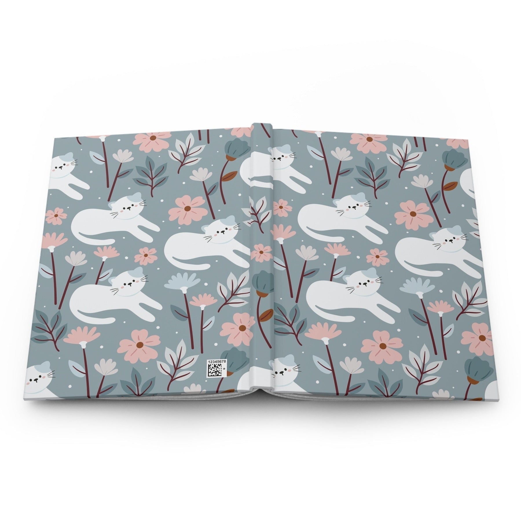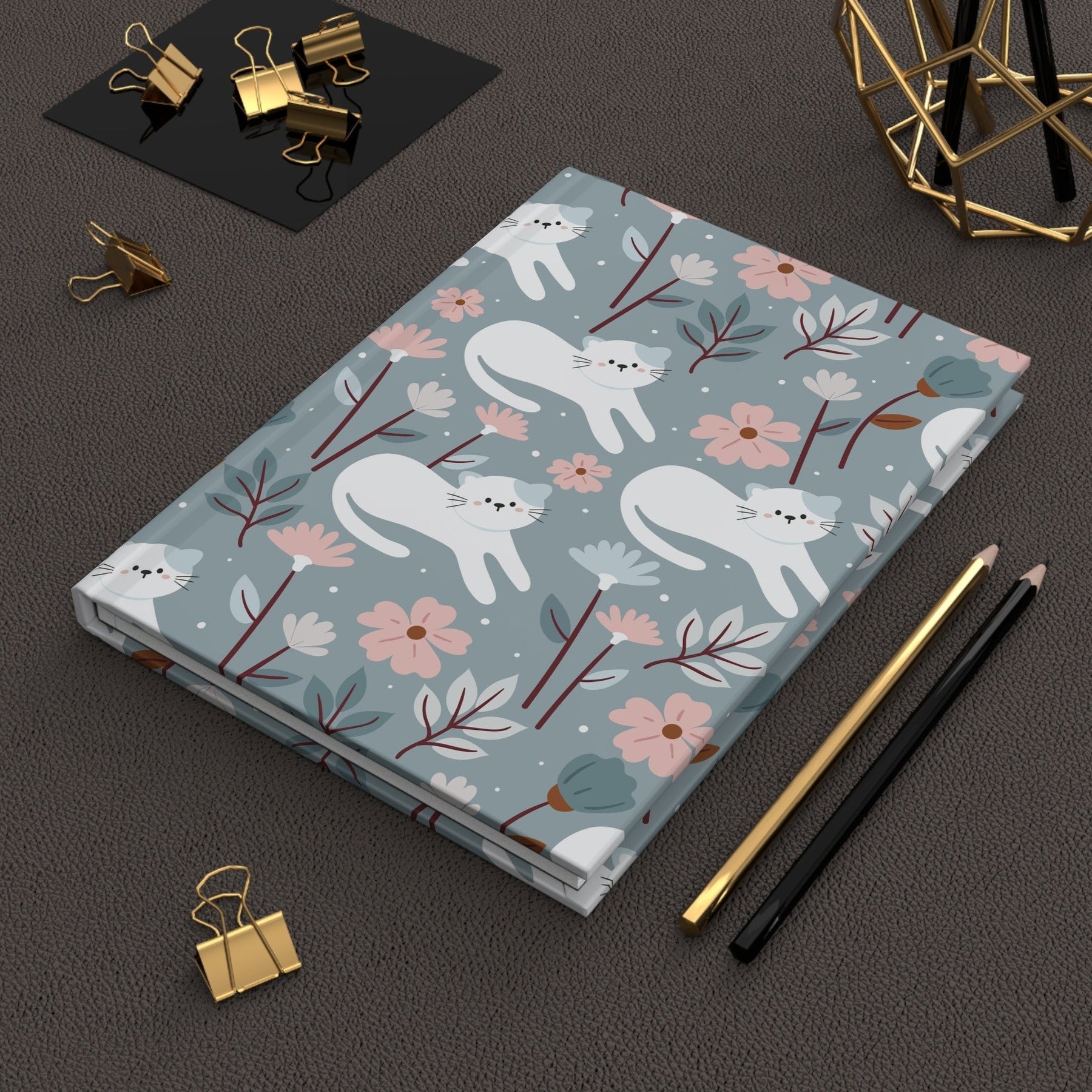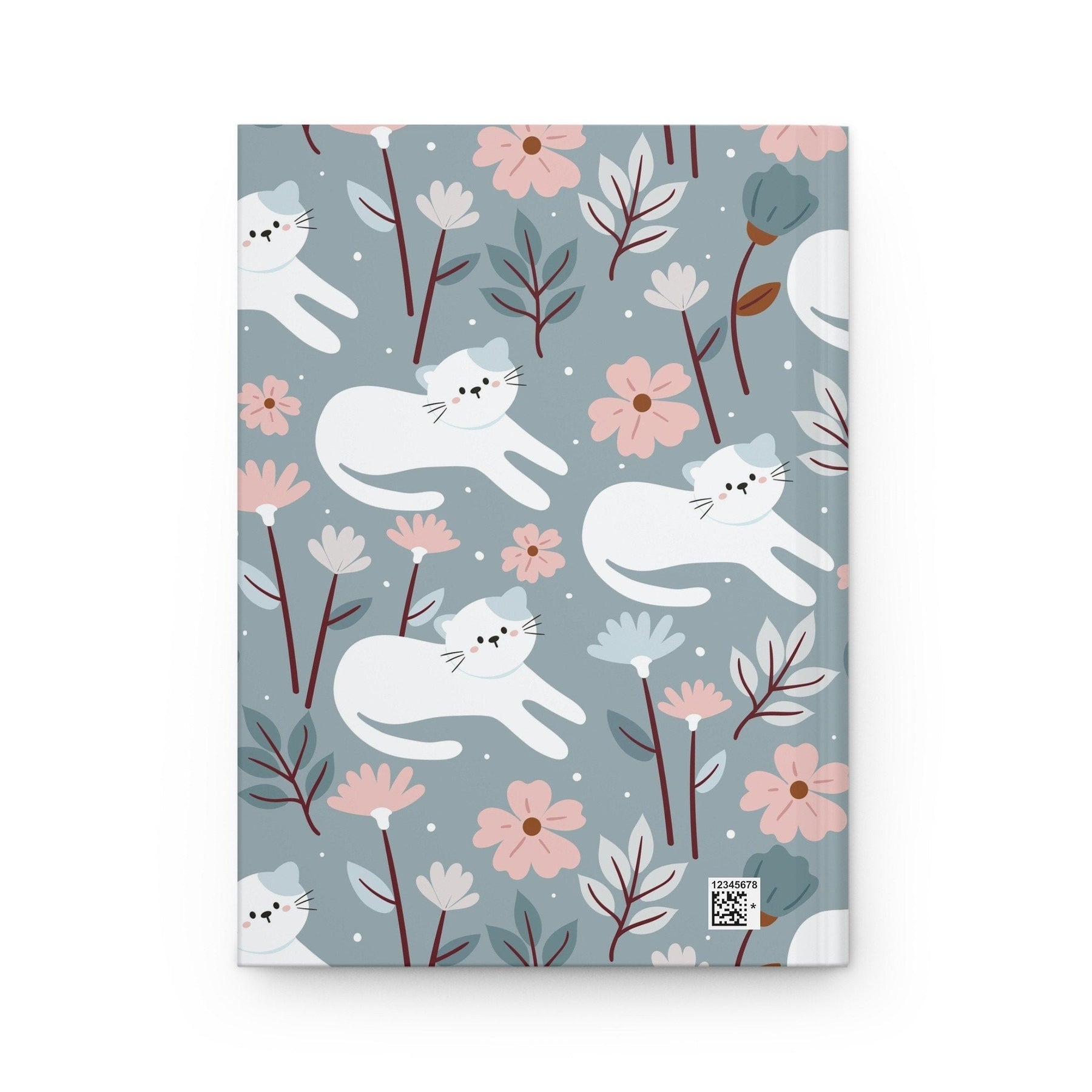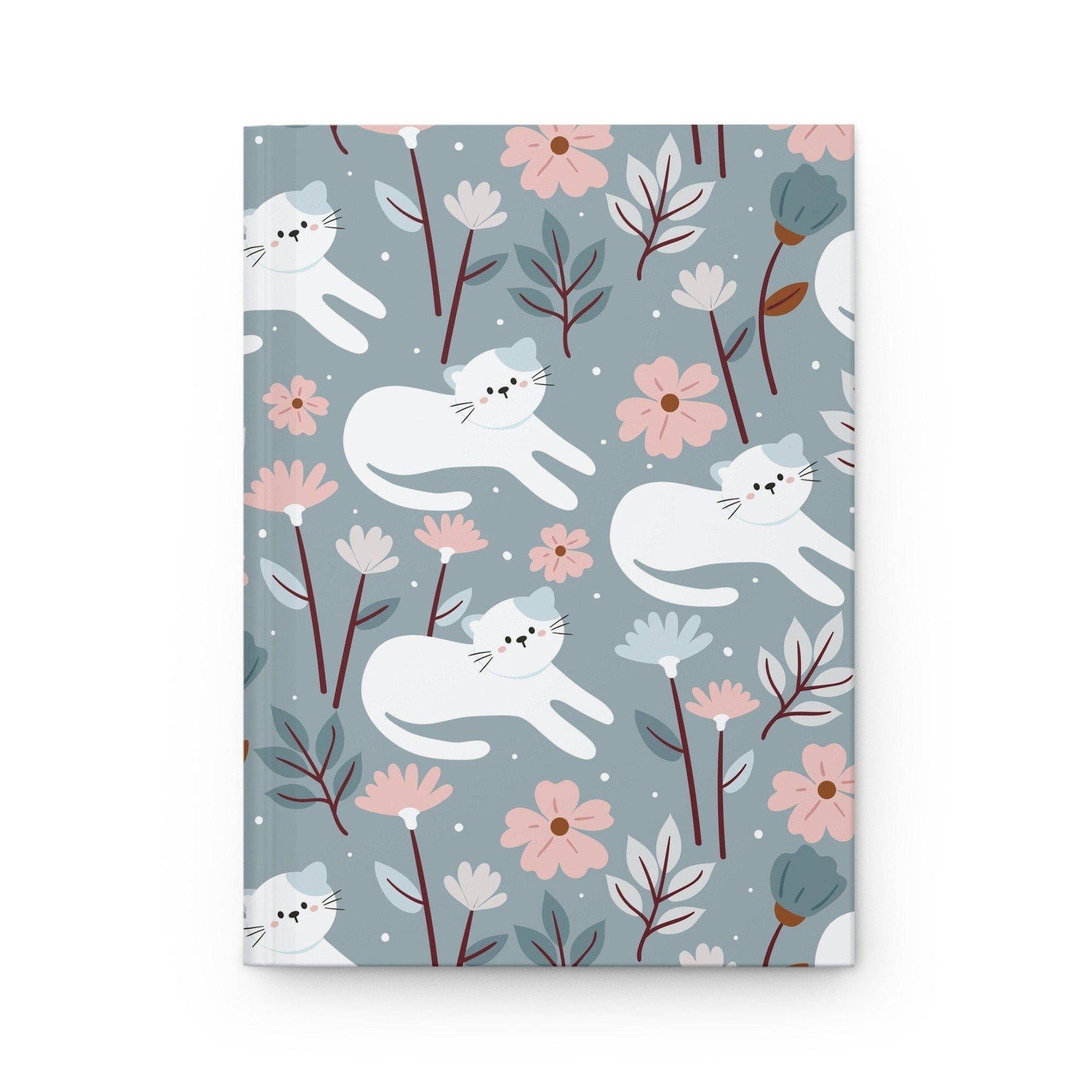 Step into a whimsical world of floral delight with our Field of Flowers Cat Hardcover Journal. This enchanting masterpiece showcases an exquisite collection of white cartoon cats prancing among delicate flowers and leaves, all in enchanting shades of smoky blue. The soft and dreamy background creates the perfect canvas for your creative thoughts and inspirations to bloom.