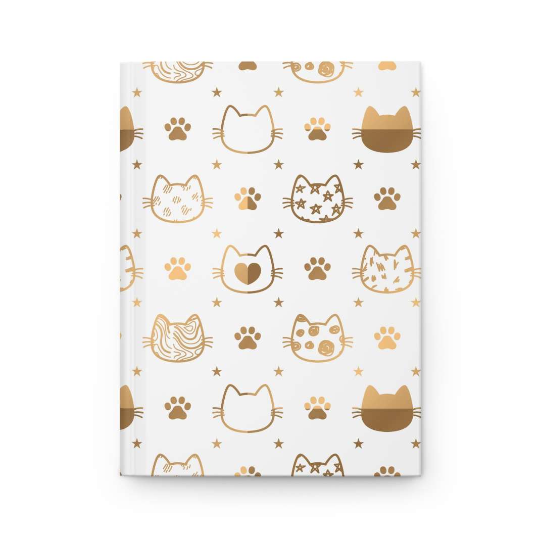 Introducing the Golden Cat Hardcover Journal - a truly magical addition to your collection of stationery treasures! Prepare to be whisked away to a world of feline enchantment as you delve into the pages of this exquisite journal. With its captivating white background adorned with charming gold colored cat heads, each embellished with their own unique touch, you'll find yourself drawn to the playful elegance these little creatures exude.