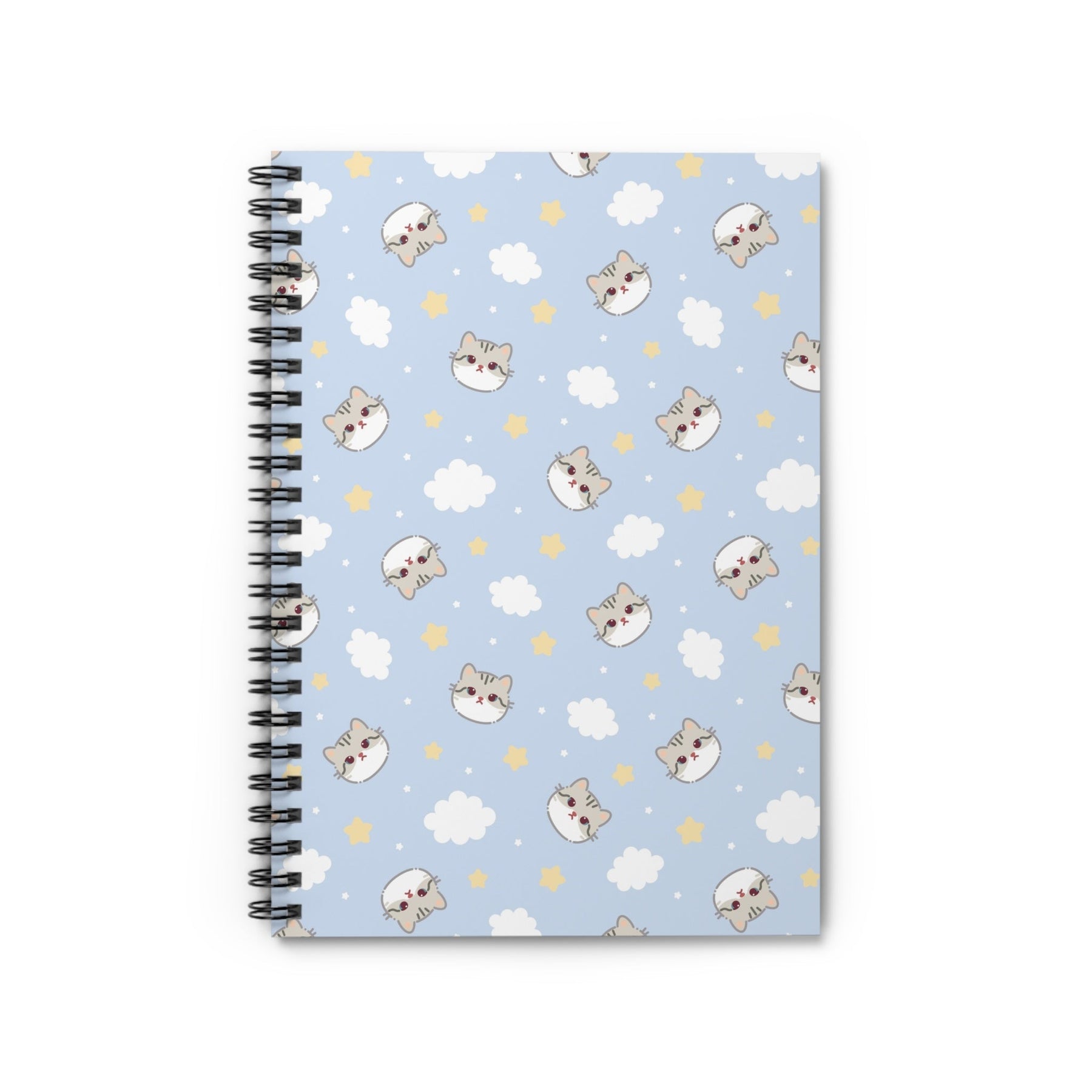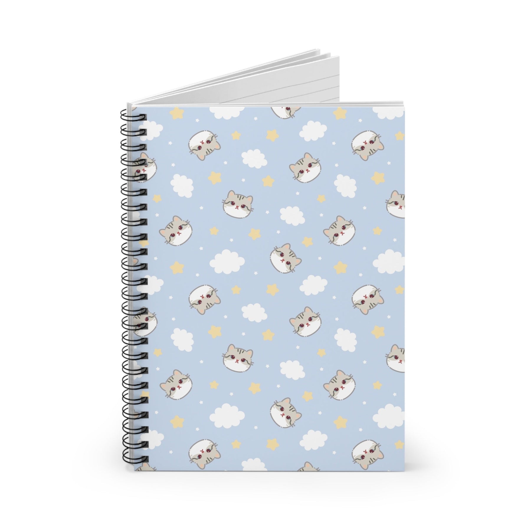Love cats and lazy days spent dreaming among the clouds? The Gray Cat and Clouds Spiral Notebook makes the perfect companion for both! You'll be immediately enchanted by the light blue background, little gray cartoon cat heads, white puffy clouds, and little yellow stars that decorate the cover - it's like stepping into a dreamland!