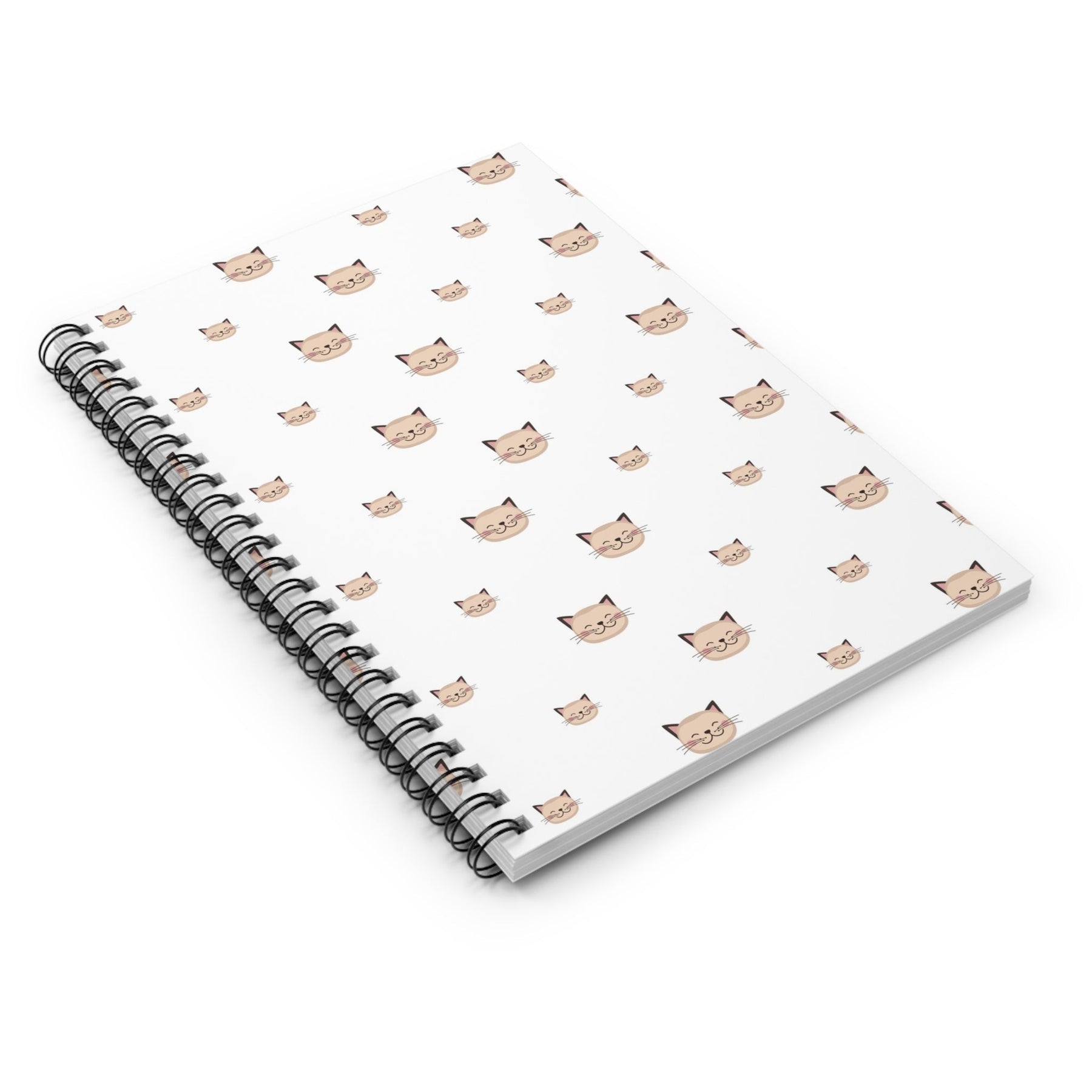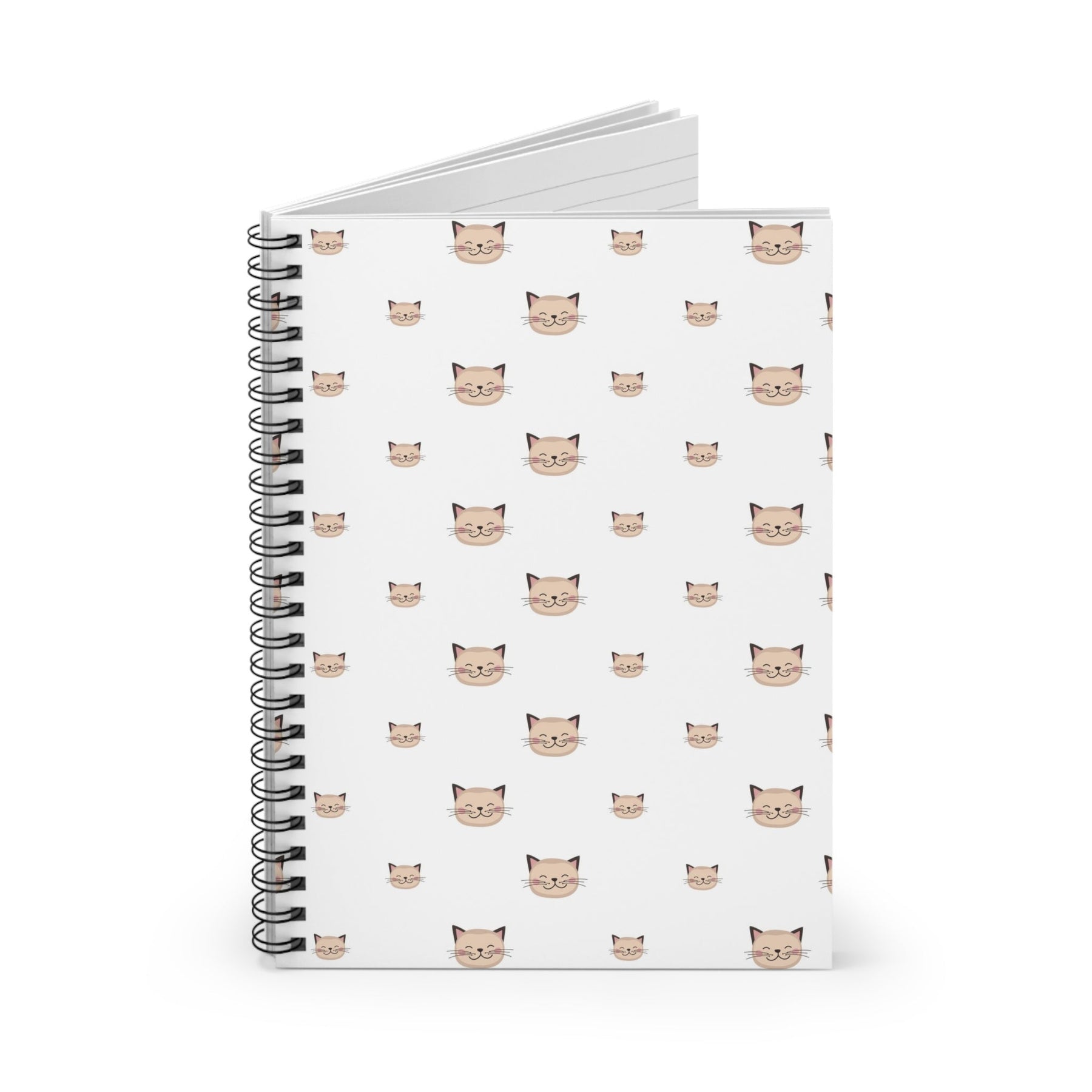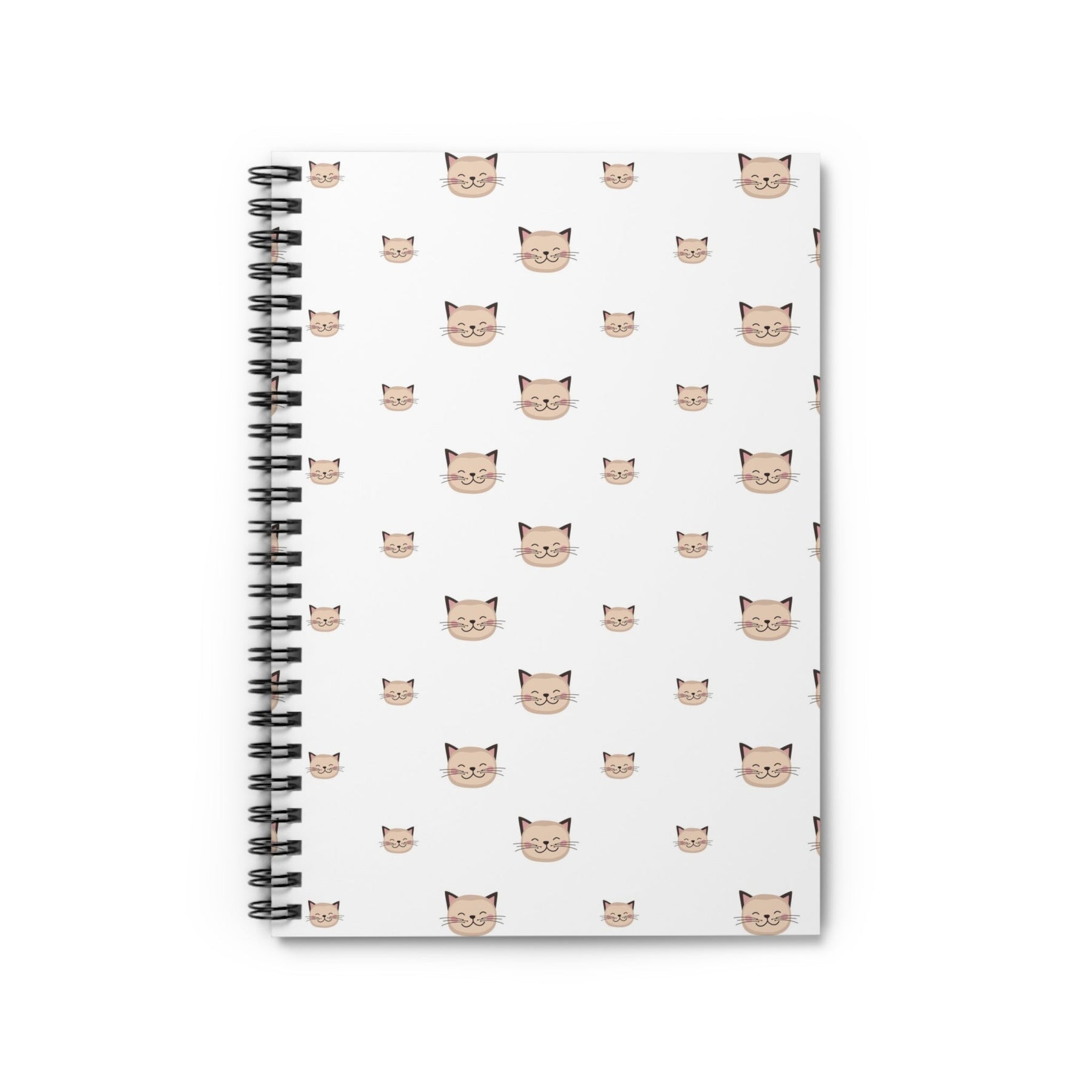 Introducing the purr-fect companion for all cat lovers out there - the Happy Tabby Cat Spiral Notebook! Embrace your feline fervor with this adorable notebook that is bound to make your heart flutter and your creativity soar. With its charming little tabby cartoon heads sprinkled across a pristine white background, this notebook captures the essence of our beloved furry friends and brings a touch of whimsy to your everyday life.