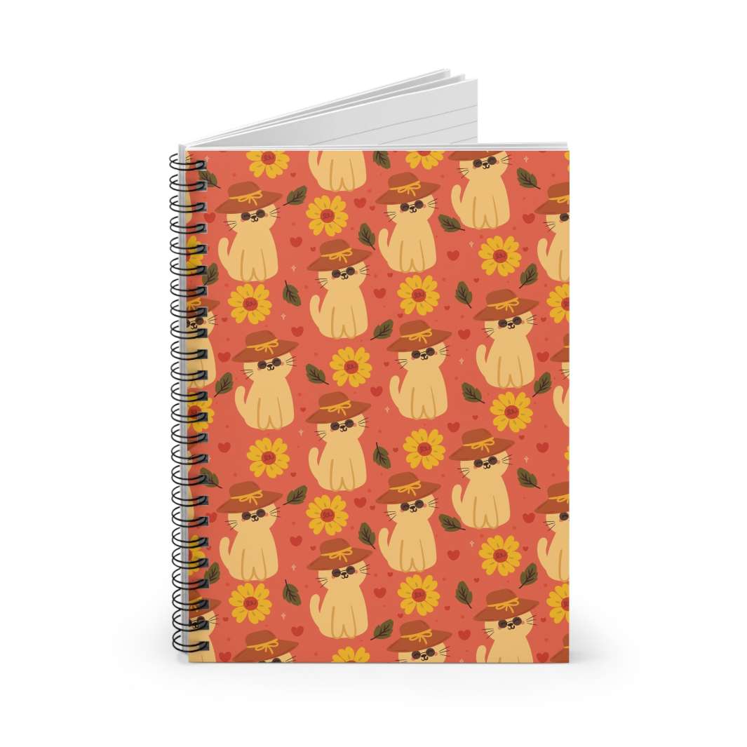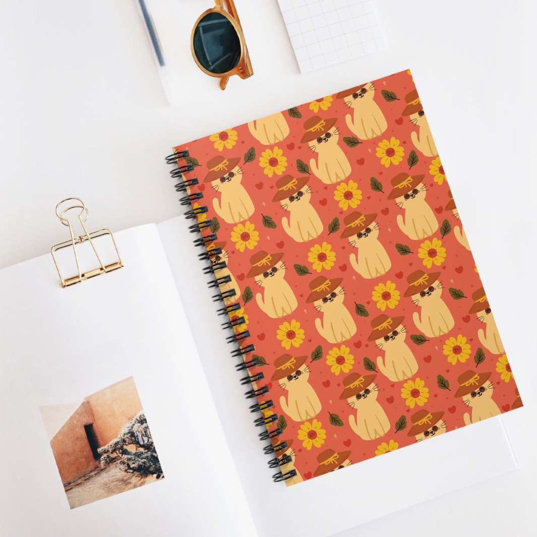 Add the perfect splash of sunshine to your notes with the Straw Hat Cat Spiral Notebook!