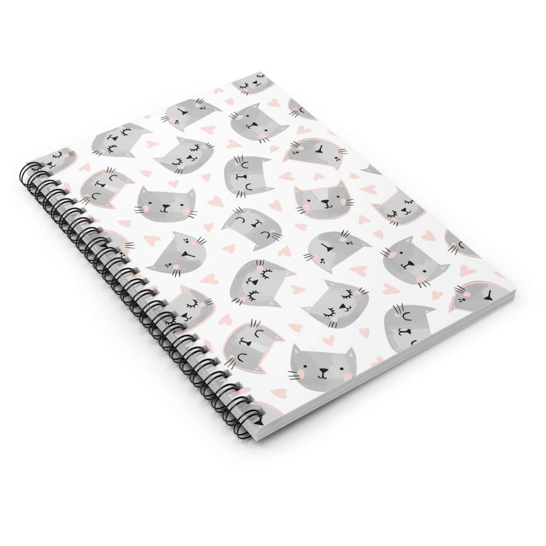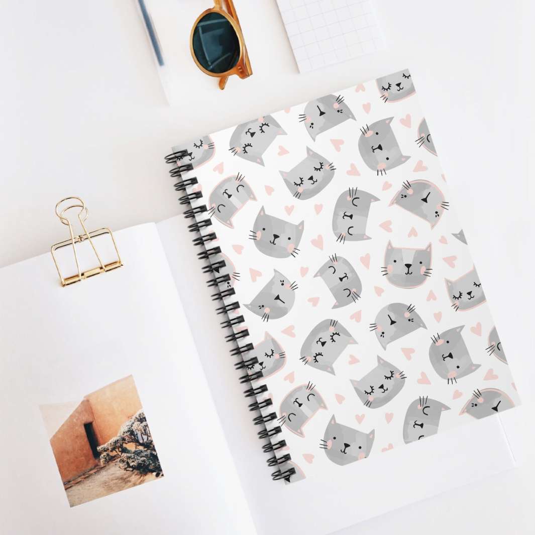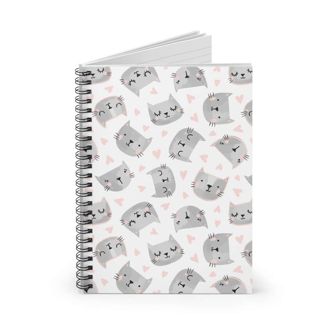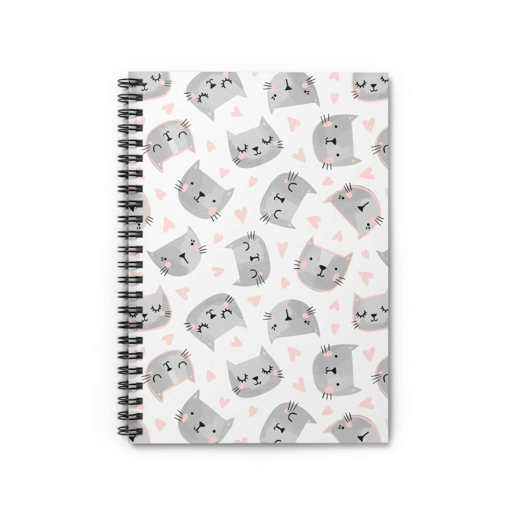 Hey there, cat lovers! Are you ready to add a touch of feline charm to your everyday life? Look no further than our adorable Sweet Gray Kitty Spiral Notebook - Ruled Line! With its trendy white background and whimsical design featuring darling gray cartoon cat heads and cute pink hearts, this notebook is sure to capture your heart and bring some much-needed cheer to your day.