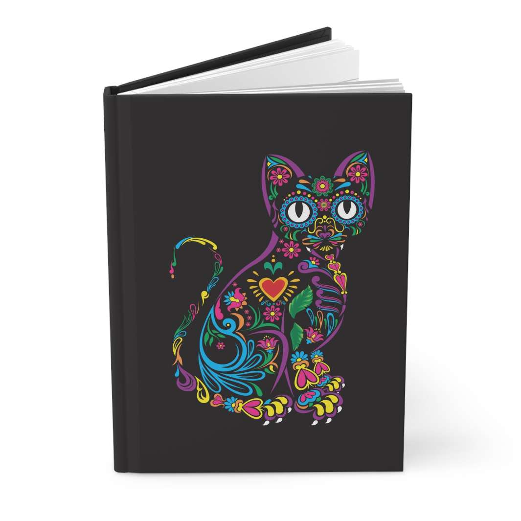 Are you tired of ordinary, plain journals that don't reflect your vibrant personality? Look no further than the Vibrant Kitty Hardcover Journal! With its sleek black background adorned with a multi-colored cat splashed in the mesmerizing hues of turquoise, purple, yellow, and red, this journal is bound to captivate your creative spirit and bring a smile to your face with every glance.