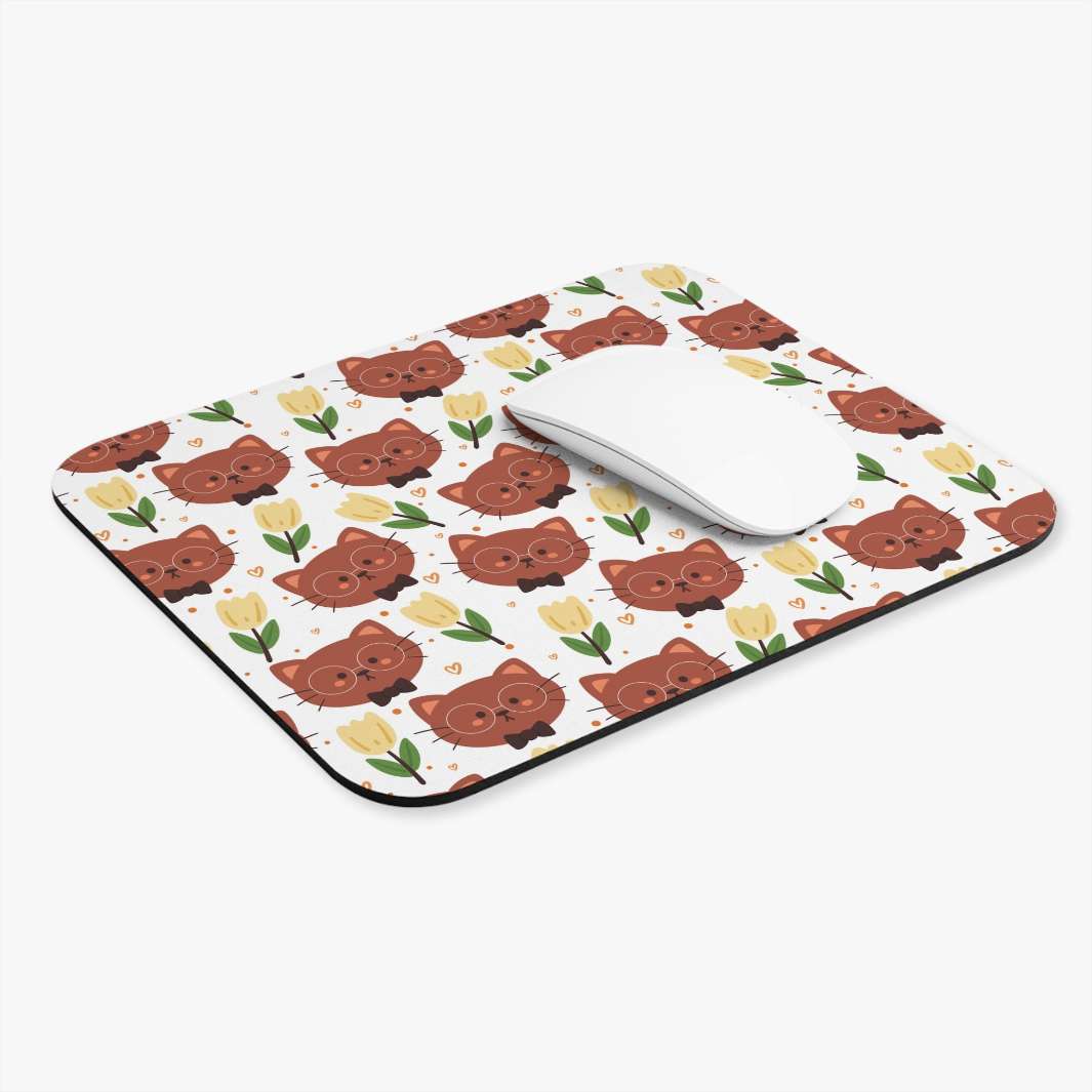 If you’re looking for a whimsical and stylish mouse pad, the Brown Cat and Tulips Mouse Pad is the perfect choice! It features a cute cartoon cat wearing glasses and a bow tie, surrounded by a field of bright yellow tulips. The design is perfect for the cat lover in your life, or as a unique and eye-catching addition to any desk.