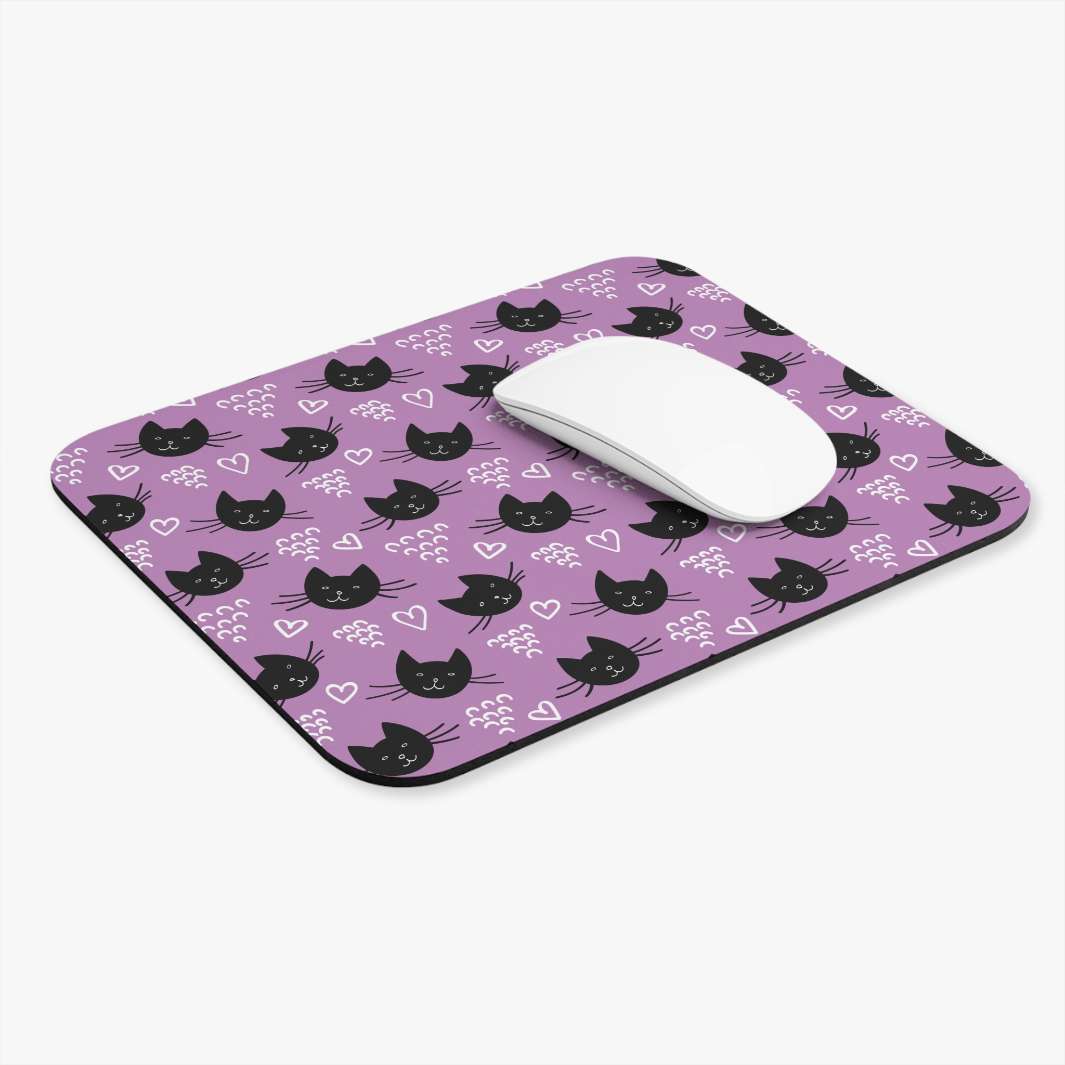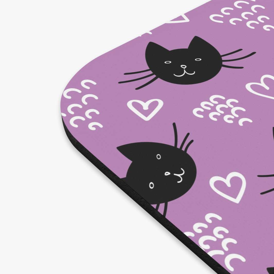 Say goodbye to dull, plain mouse pads and hello to a world of fun and creativity with our Purple Hearts and Whiskers Mouse Pad. The vibrant purple background is not only eye-catching, but also a symbol of creativity and individuality. And what better way to showcase your love for felines than with the whimsical black cartoon cats heads that are sure to put a smile on your face every time you use it.