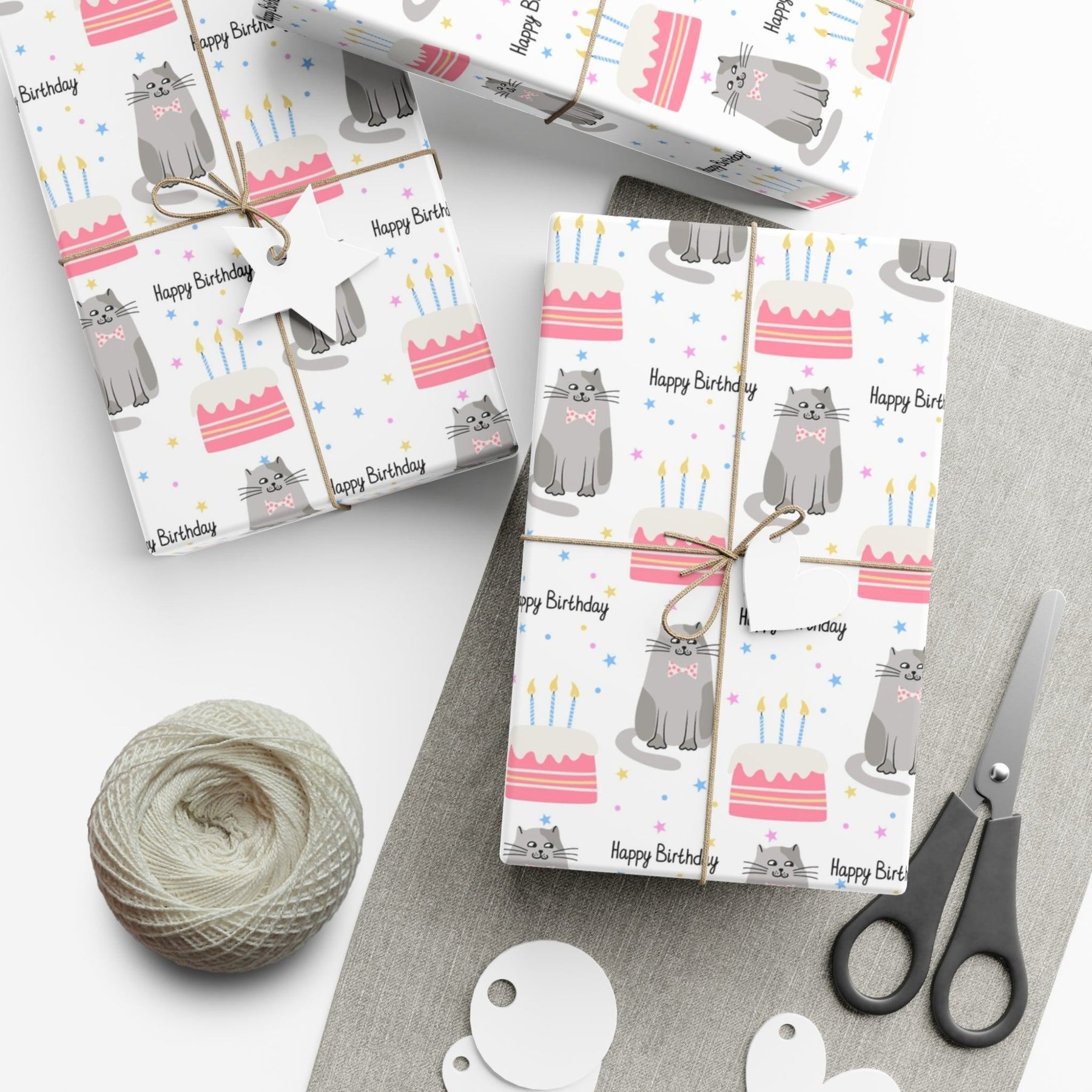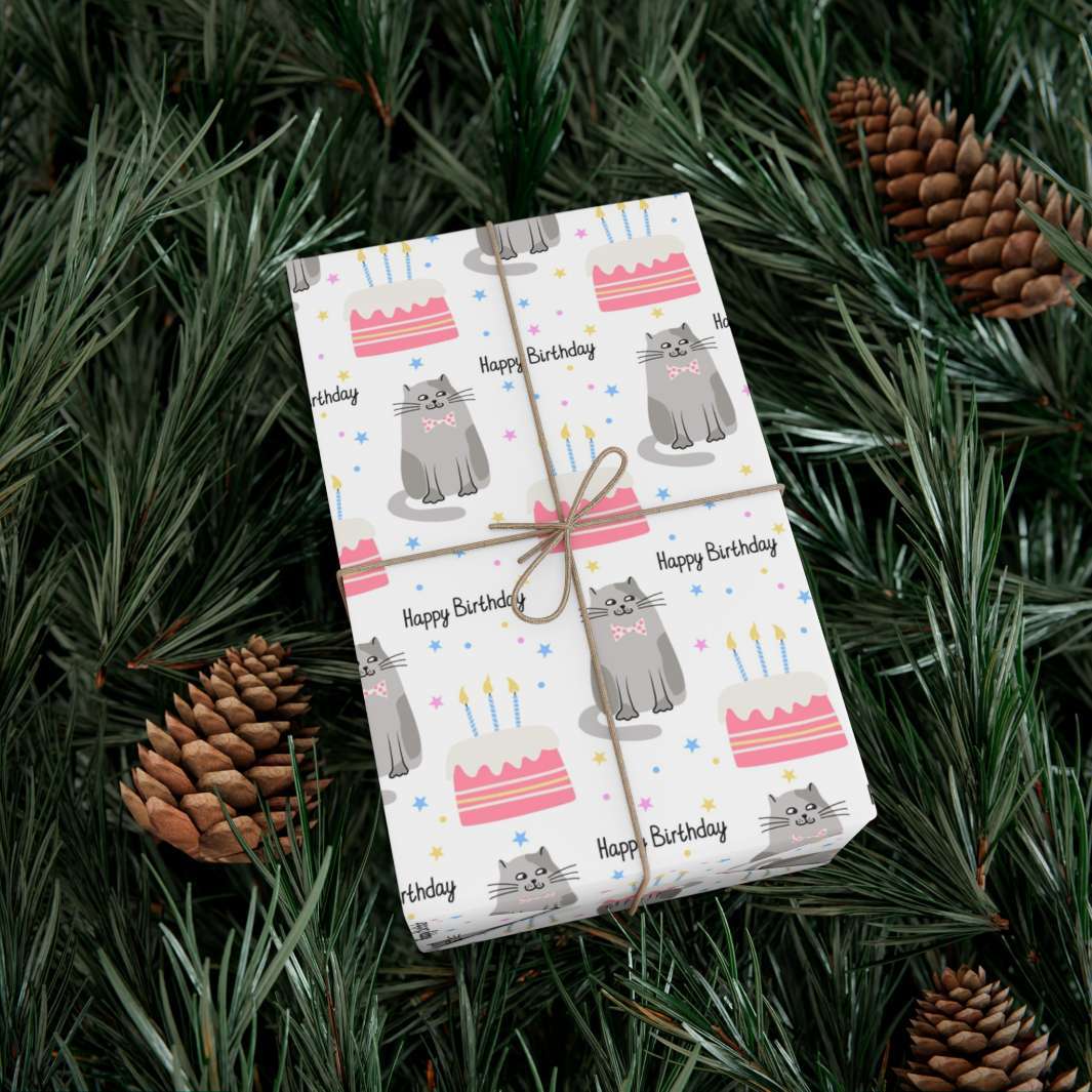 No matter who gets your gifts dressed in this unique wrapping paper, they're sure to be delighted. So don't hesitate - pick up Happy Birthday Gray Cat Gift Wrap today and show someone special how much you care. We guarantee satisfaction every time - so why wait? Bring life back to gifting with our Happy Birthday Gray Cat Gift Wrap and create something truly memorable today!