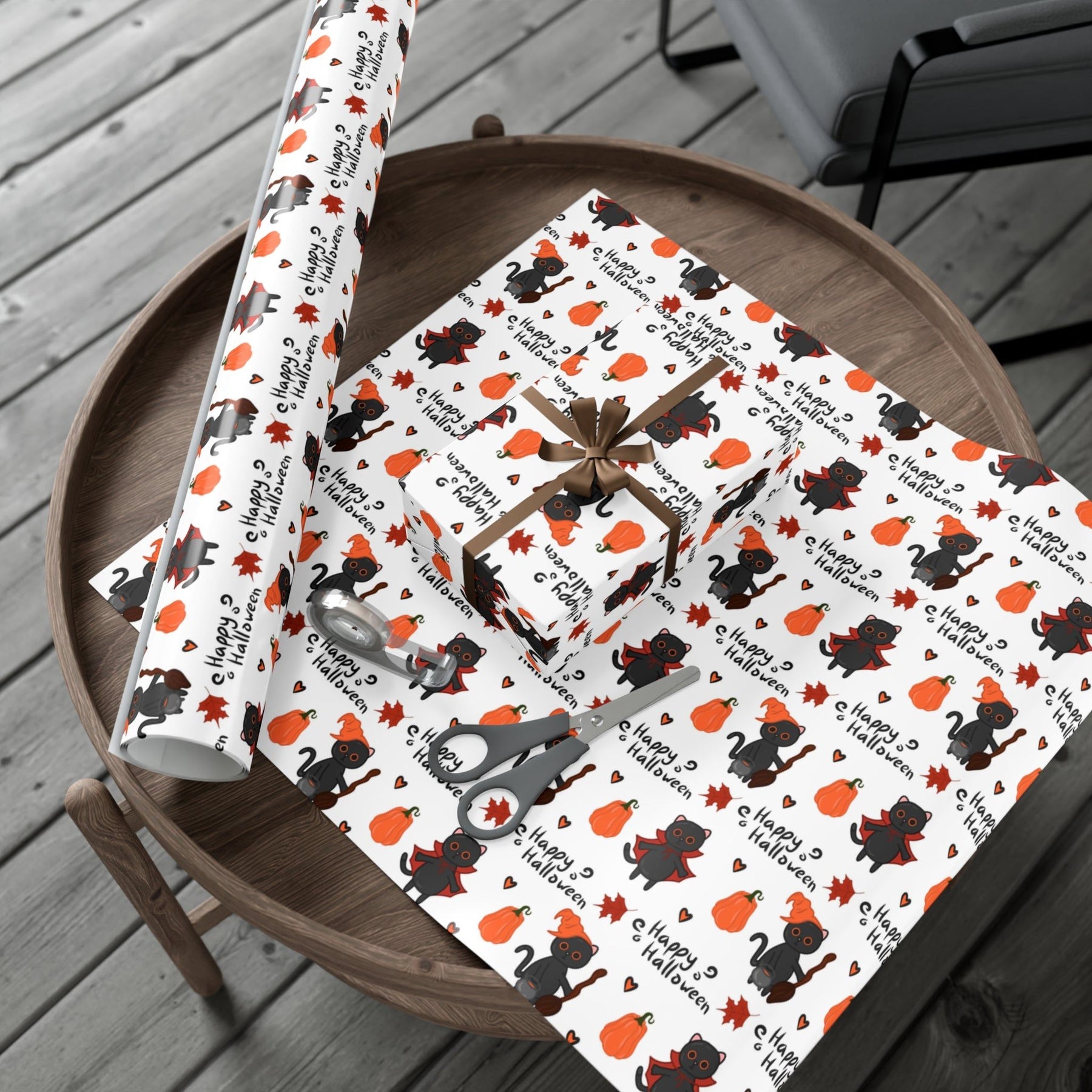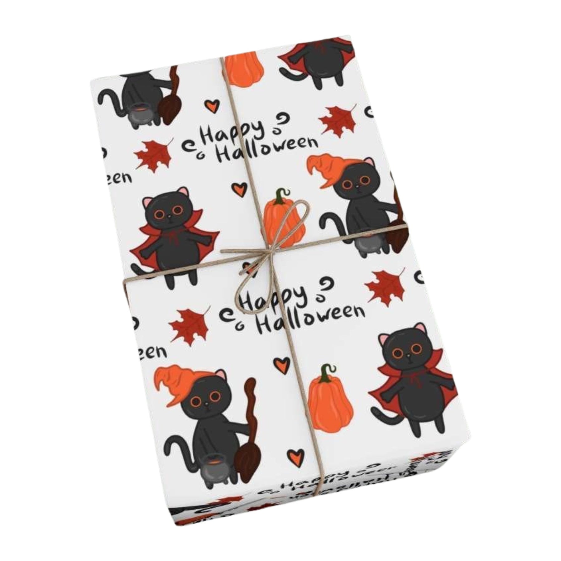 So, why settle for plain and boring when you can add a touch of whimsy and excitement to your presents? Choose our Happy Halloween Black Cat Gift Wrap and let it work its enchantment. Whether you're wrapping up a spooky surprise or simply looking to spread some holiday cheer, this gift wrap is the answer to all your Halloween gift-giving needs.