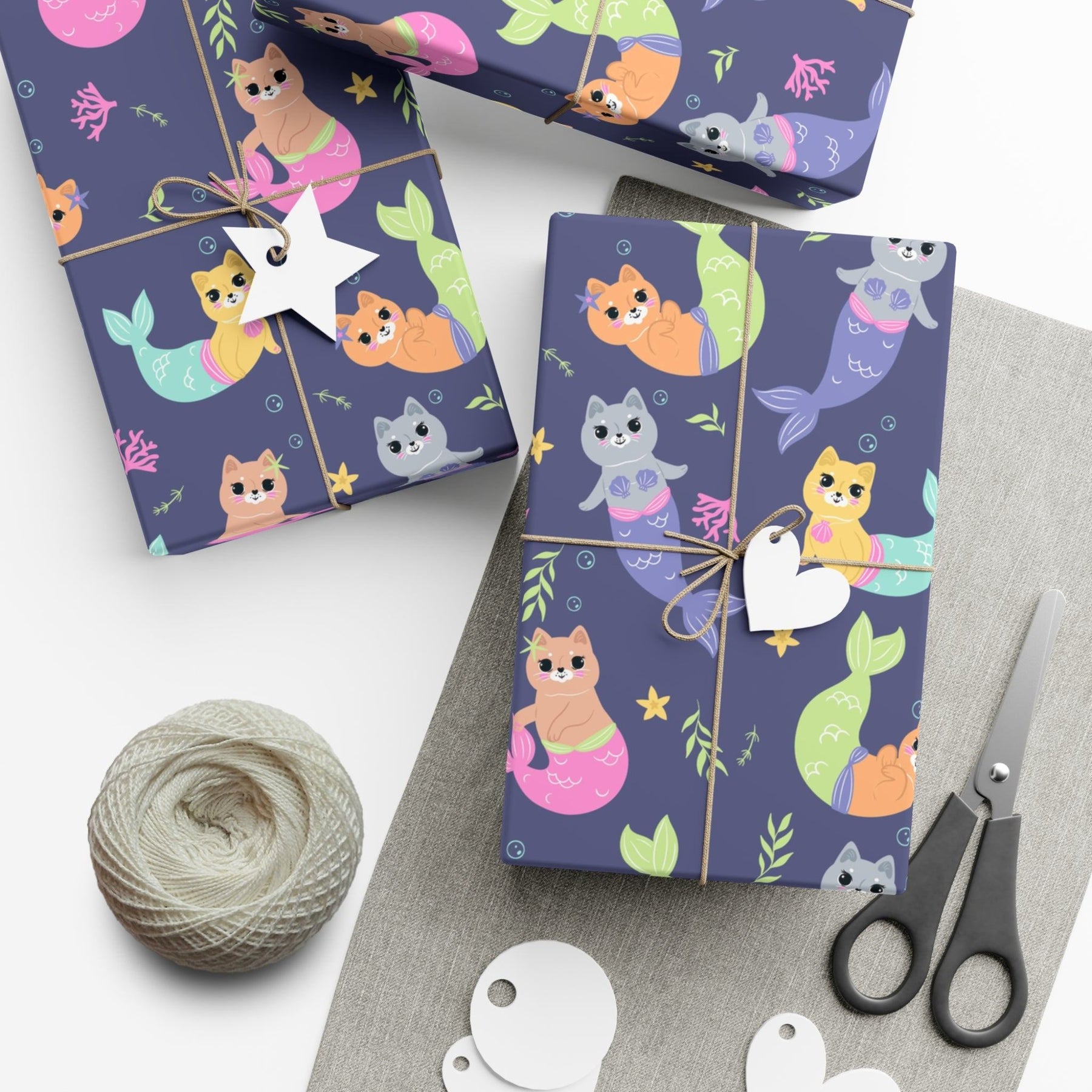 Welcome to your dream come true – Mermaid Cat Gift Wrap! A must-have for all mermaid and cat lovers, this colorful wrapping paper is perfect for any special occasion.
