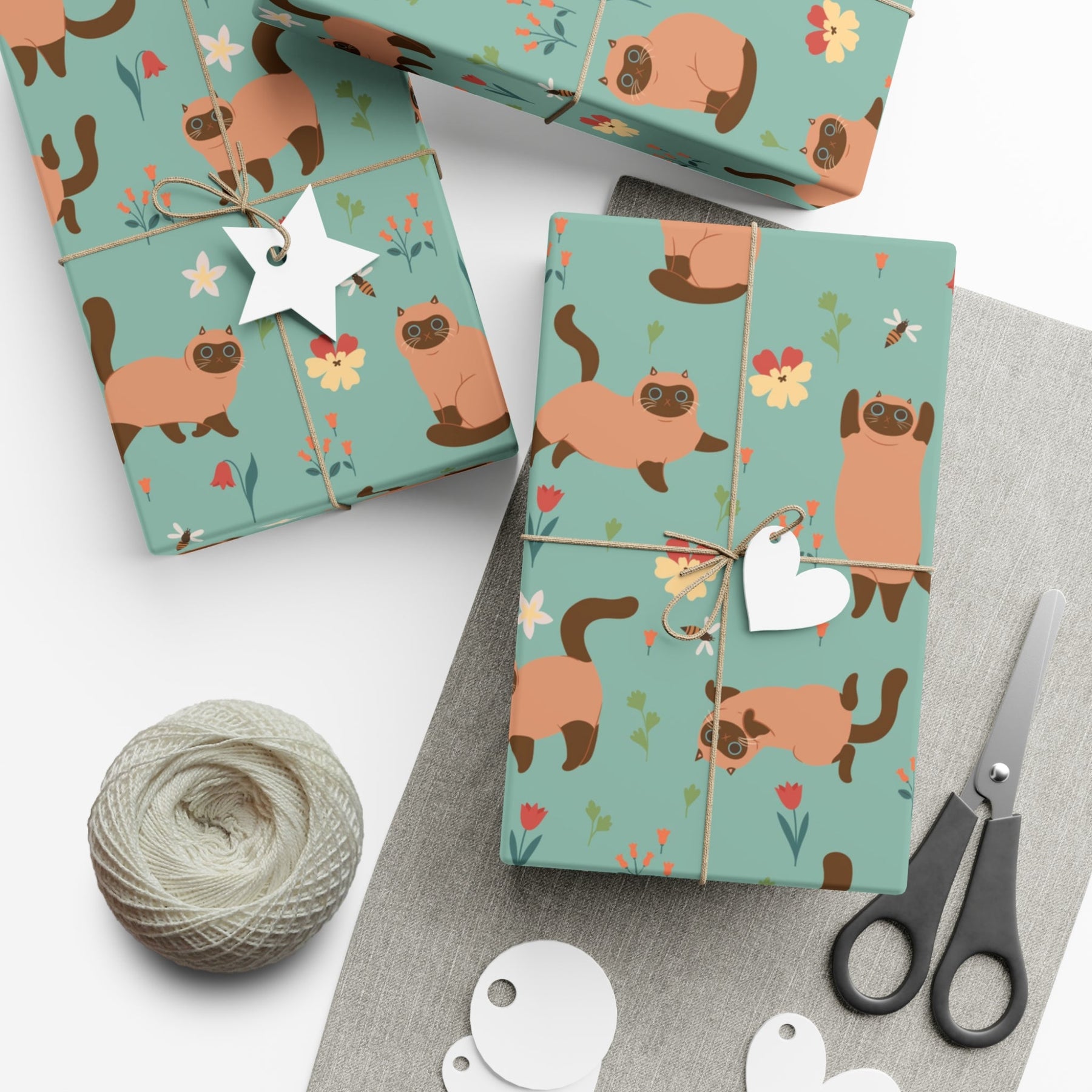 So, if you're looking for a gift wrap that not only makes a statement but also fills every heart with adoration, our Siamese Cat and Flowers Gift Wrap is the perfect choice. With its captivating design, superior finishes, and dedication to sustainability, it's a gift wrap that will leave an everlasting impression on both the gift and the recipient. Embrace the magic of our Siamese Cat and Flowers Gift Wrap and let your presents become extraordinary moments of joy.