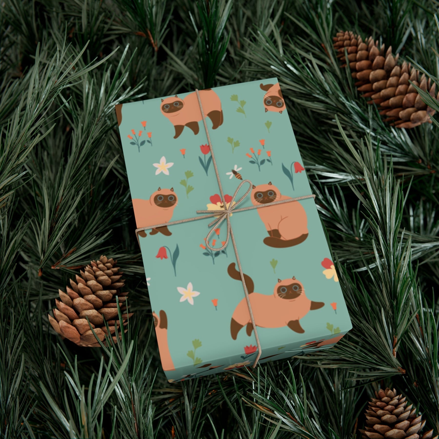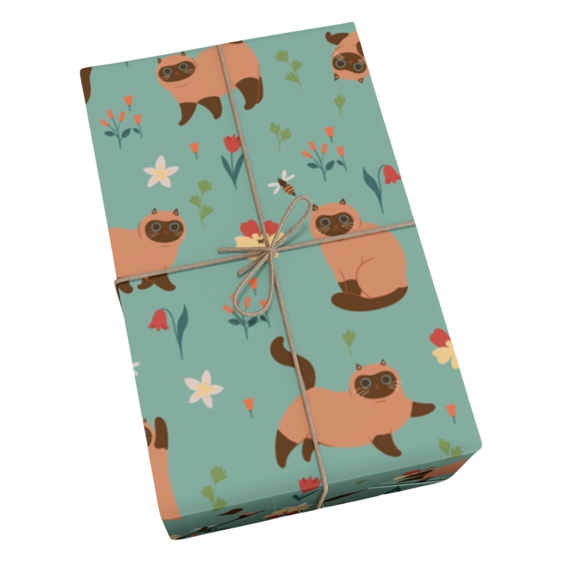 Imagine the smiles and squeals of joy when your loved ones receive a gift wrapped in our Siamese Cat and Flowers Gift Wrap. It's a true embodiment of feline charm and whimsy, capturing the essence of your affection for all things cat-related. The siamese cats, flowers, and buzzing bee will transport your recipients into a world of enchantment, where the art of gift-giving becomes a cherished shared experience.