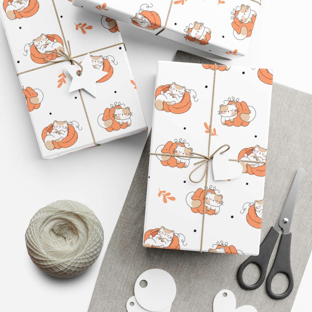 So the next time you’re looking for a cute and charming way to wrap your gifts, look no further than Sleepy Pumpkin Cat Gift Wrap! It adds a special touch of style and thoughtfulness to your gifting, and is sure to be loved by all who see it.