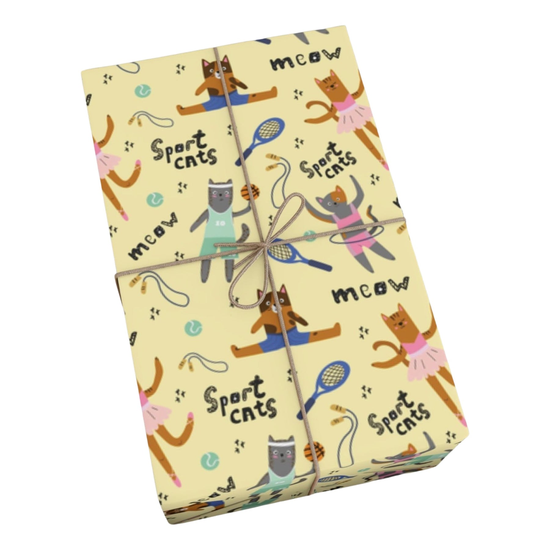 In summary, our Sporty Cat Gift Wrap is a delightful and engaging way to elevate any gift-giving occasion. It's the ideal choice for cat lovers and cat owners who want to infuse their presents with a touch of feline charm and athleticism. Choose from two paper finishes and three sizes, knowing that your gift wrap is printed using eco-friendly inks. So go ahead, give your gifts a playful touch with Sporty Cat Gift Wrap and let the joyous meows begin!