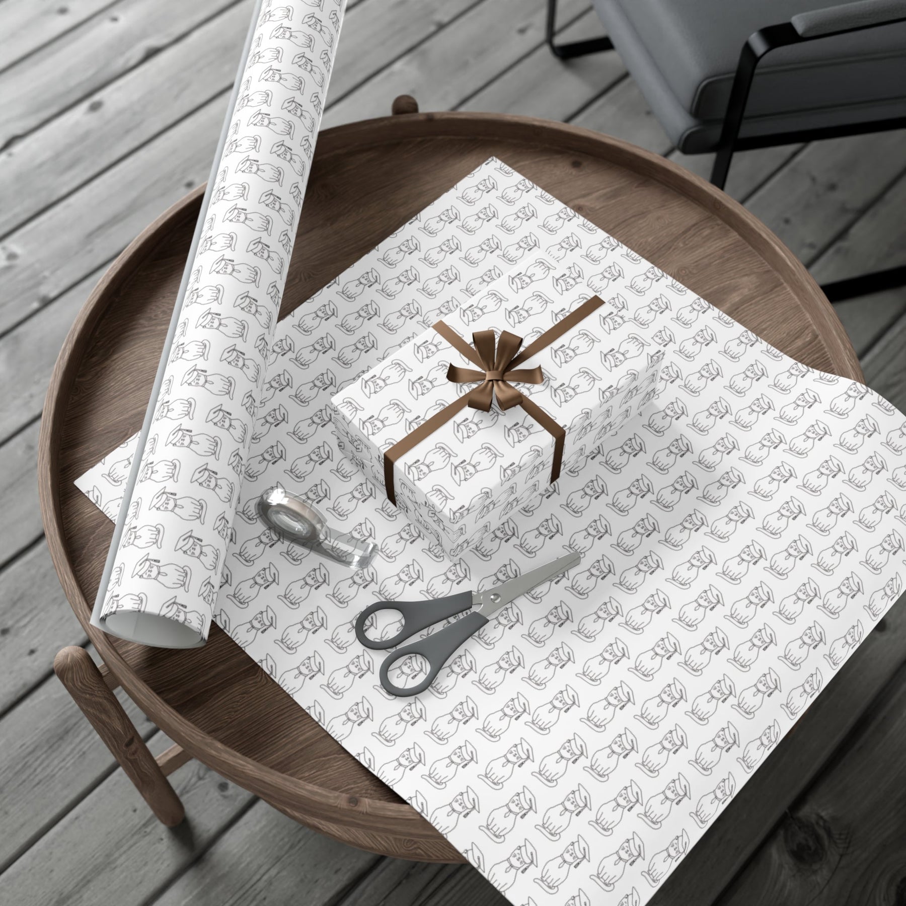 Choose from two beautiful paper finishes: matte or satin. Both types provide a perfect backdrop to the humorous and heartfelt black line sketch, making a fun and stylish way to package your special gift. Choose from three sizes to make sure your present arrives in the perfect presentation. Plus, our special gift wrap is printed using GreenGuard UL Certified inks, which means its eco-friendly and safe for both you and your recycling bin.