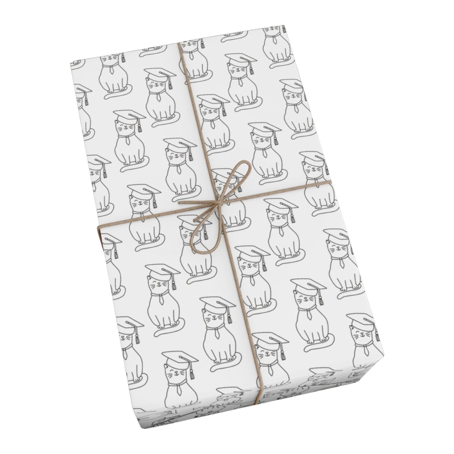 Celebrate your favorite graduate in feline fashion with Commencement Cat Gift Wrap! With a charming black line-sketch of a cat wearing a graduation cap and necktie, this one-of-a-kind gift wrap is perfect for commemorating the big day. Perfect for your favorite cat lover, cat-owning friend, or family member, this delightful gift wrap is sure to make their day special and memorable.