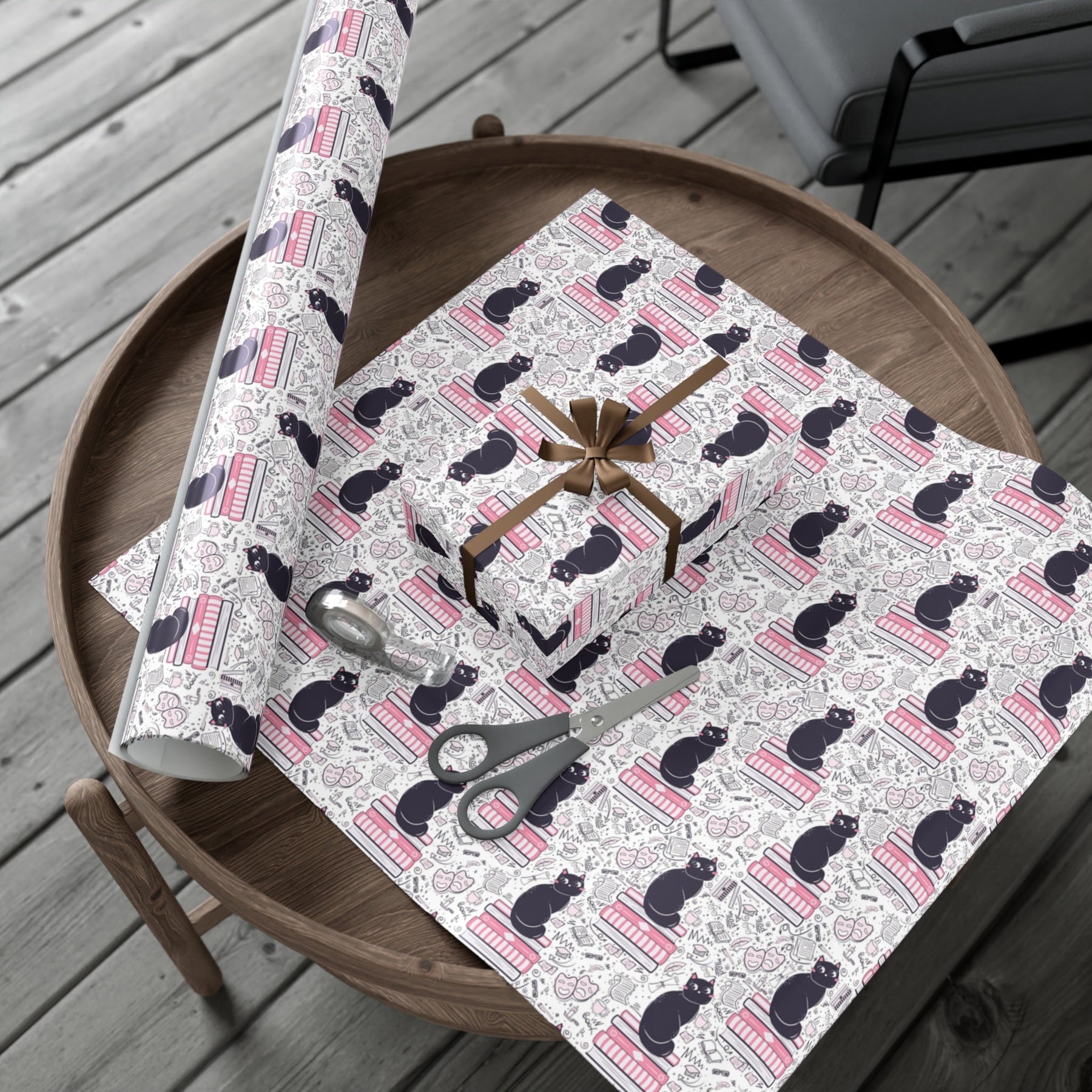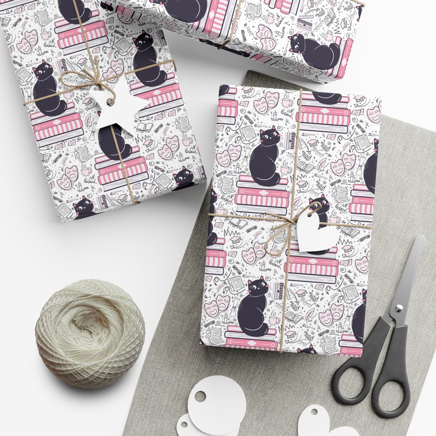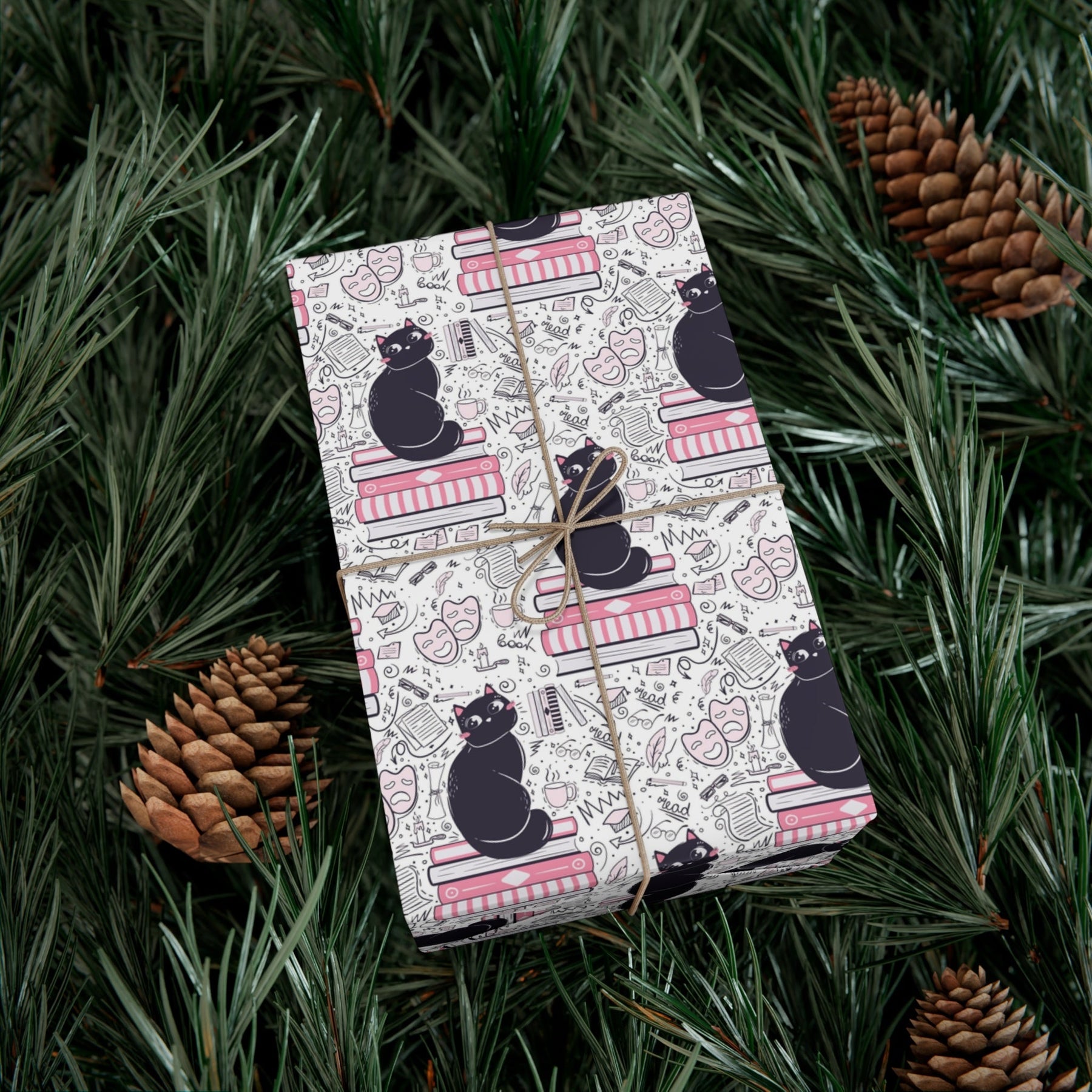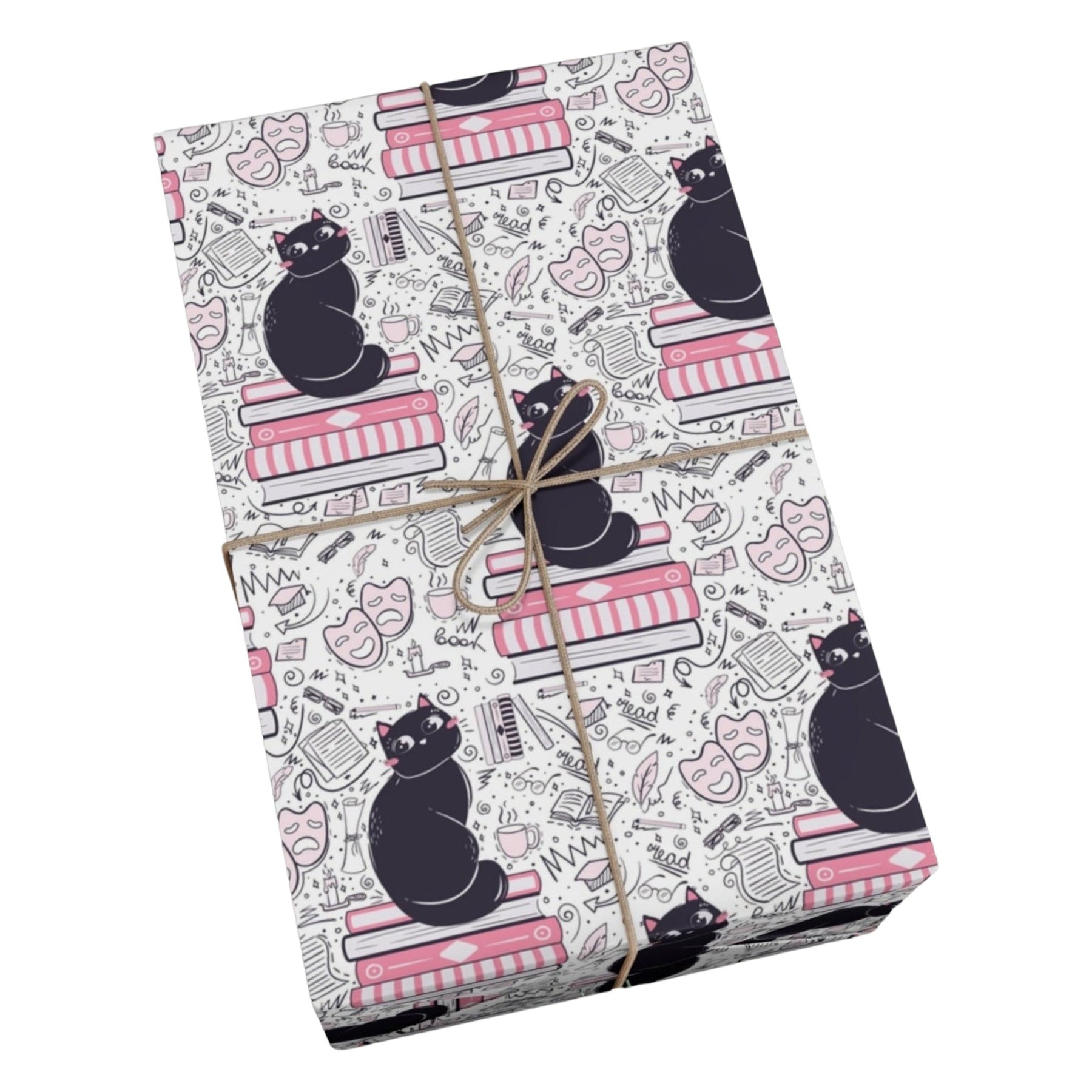 Welcome to the world of Literature Cat! This purrrrfect gift wrap is guaranteed to spark joy in any cat-lover’s heart. Our delightful design features a cute cartoon cat nestled on a pile of pink books, with fun doodles encircling them—theatrical masks, eyeglasses, and more. The white background sets off the design perfectly. Whether they’re celebrating an occasion or just wanting to show someone special how much they care, this one-of-a-kind gift wrap will make it more memorable.
