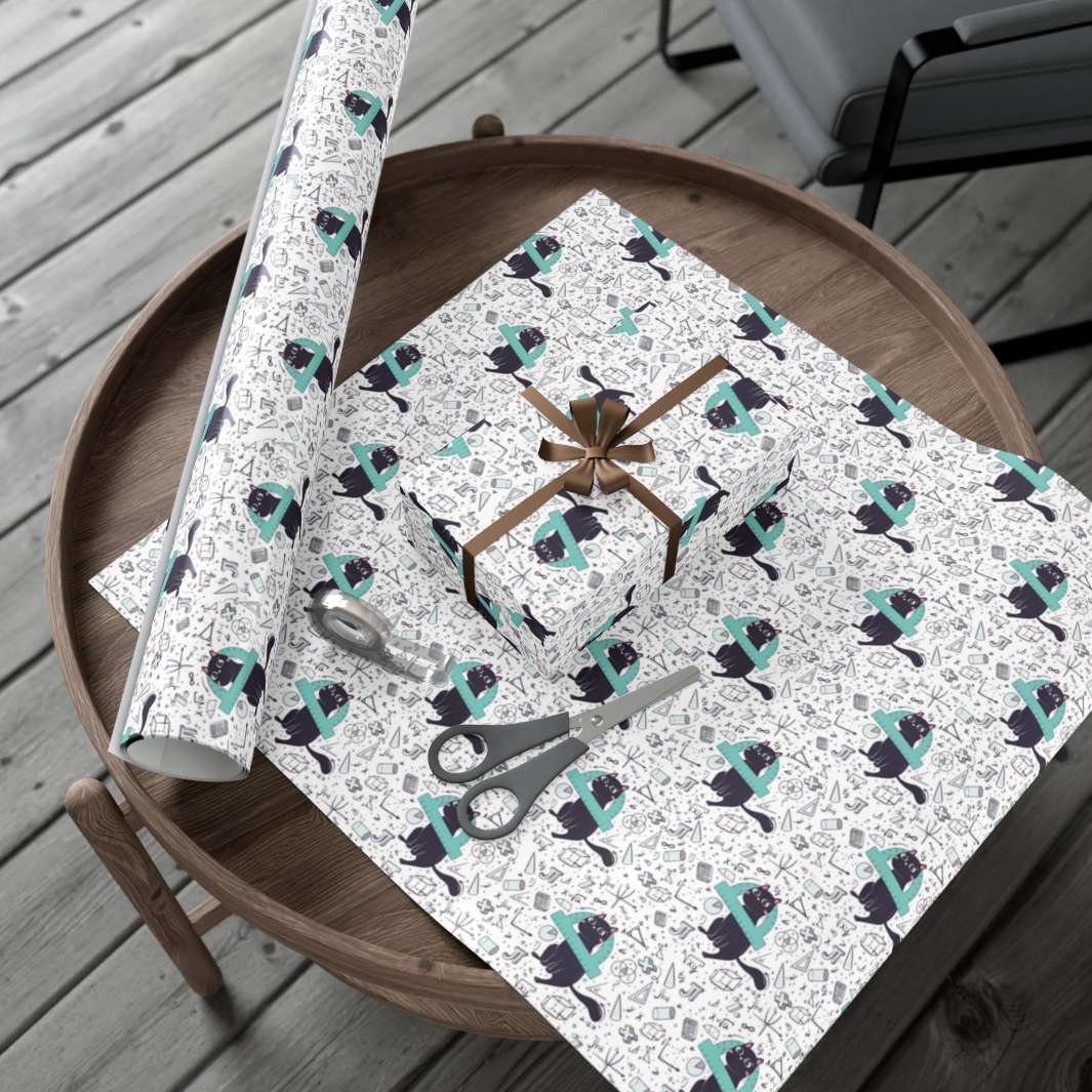 Our math cat gift wrap is perfect for those who like a good mix of educational fun and classic feline cuteness. The proof is in the proof! This gift wrap features a white background with a black cartoon cat wearing a large teal protractor is absolutely purr-ific! With an array of doodles of math symbols, equations, and formulas, you can use our gift wrap to not only show off your mathematical prowess, but you can also show your love for cats.