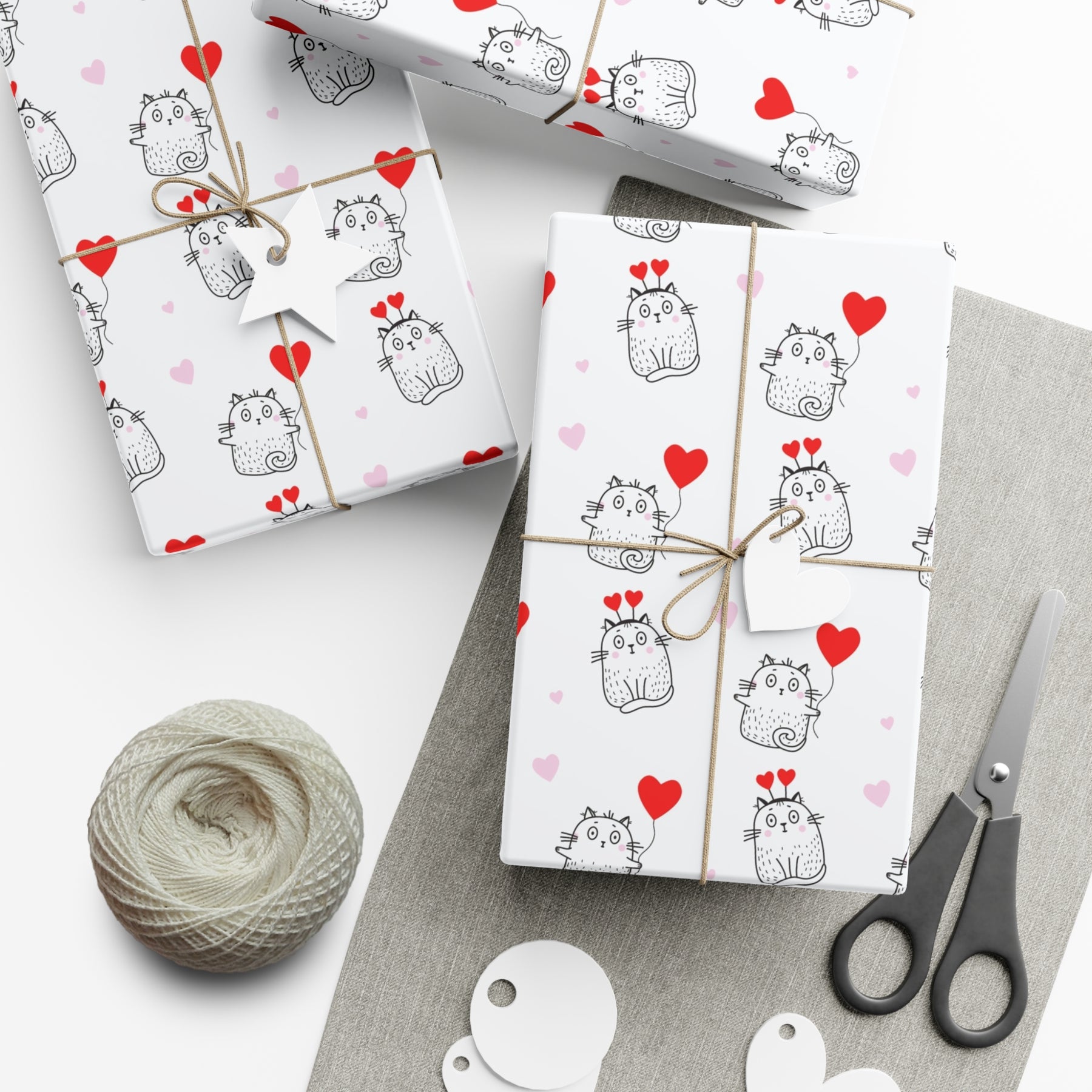 Don't just give a gift, give a gift that will make your loved ones' hearts flutter with affection and joy. Our Love-Struck Kitty Gift Wrap is the perfect way to show your affection and appreciation for that special someone. Whether it's for your significant other, family member, or friend, this gift wrap will make every present feel like it's been delivered with a warm hug and a soft purr.