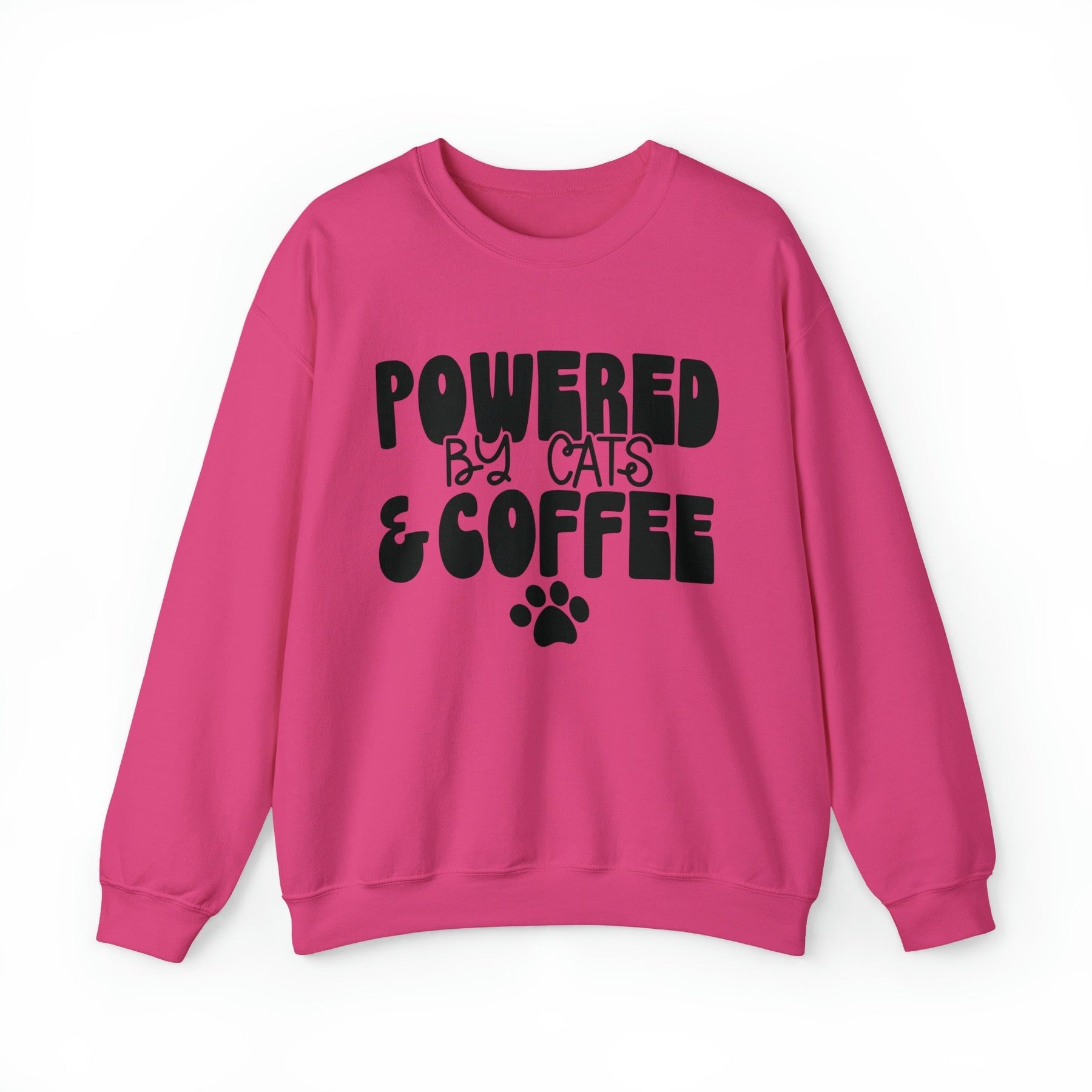 The fun design features black, bubble letters that say "Powered by Cats and Coffee" along with an adorable pawprint to complete the look. It comes in a variety of colors to match any style – so don't miss your chance to show off your purrfect fashion choice.