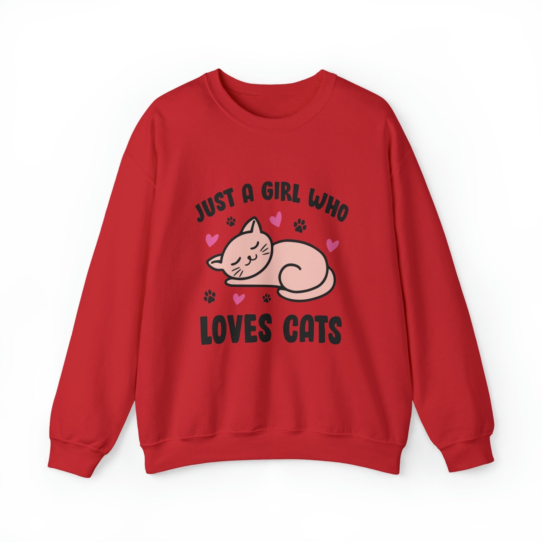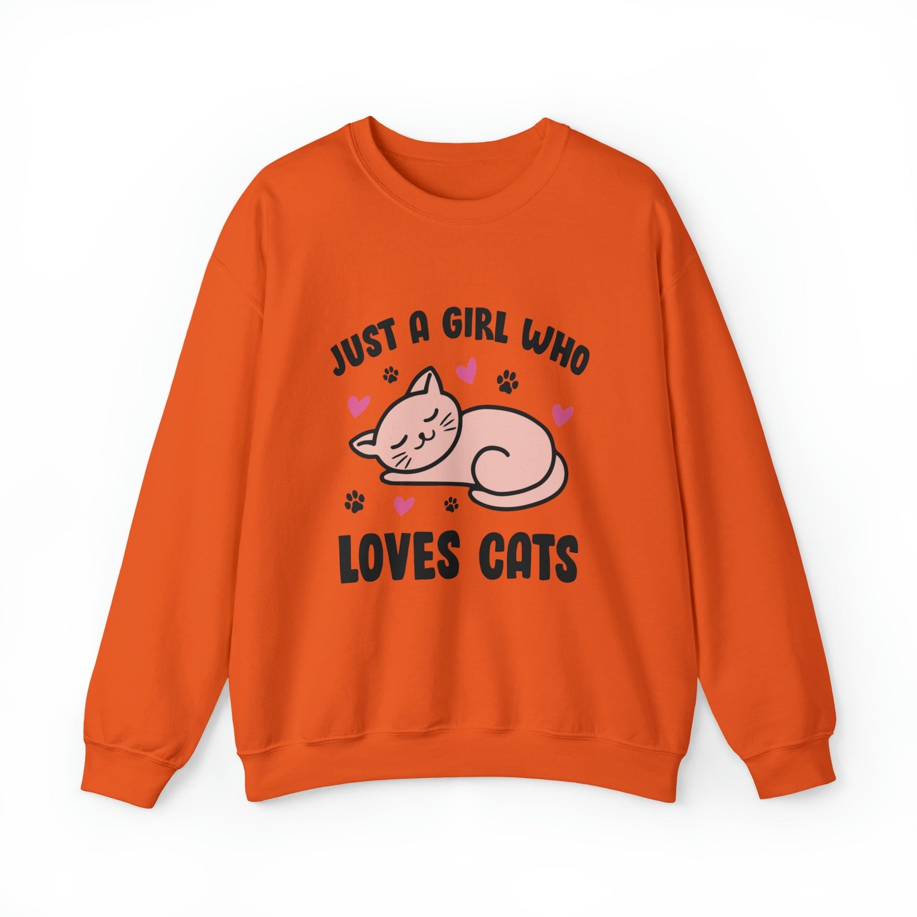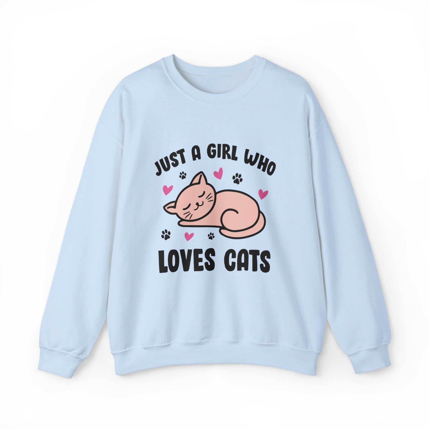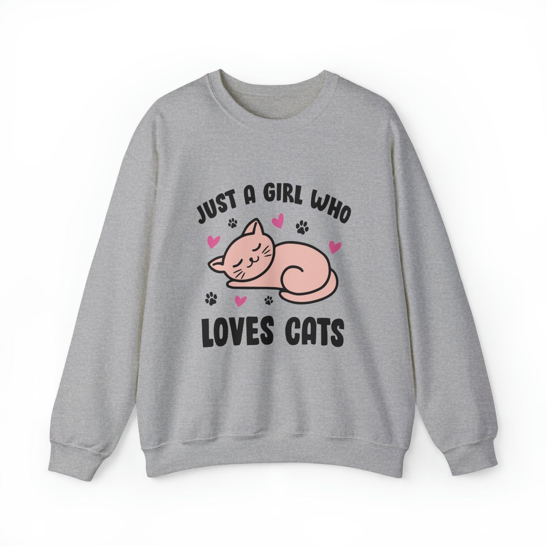 But let's not forget the most important aspect: the message. "Just A Girl Who Loves Cats." A declaration that resonates deep within your soul, this statement lets the world know that cats hold a special place in your heart. It's a bond that transcends words, and instead, is beautifully encapsulated in the charming design of this sweatshirt. Prepare for a barrage of compliments as fellow cat lovers shower you with praise for your unabashed devotion.