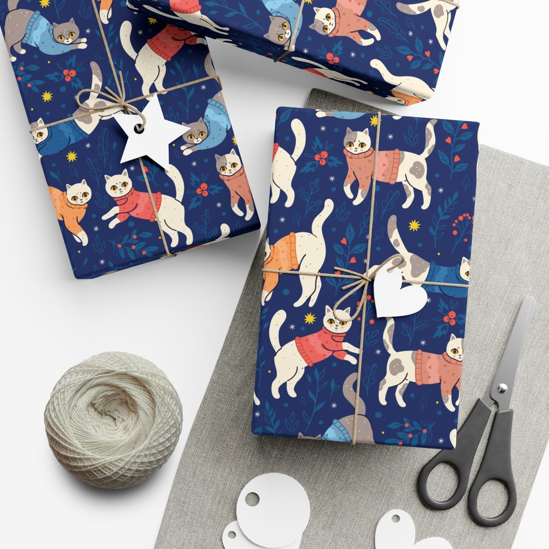 Unleash your inner cat-obsessed imagination and transform every gift into a work of art with Cats in Sweaters Gift Wrap. It's a wrapping extravaganza like no other!