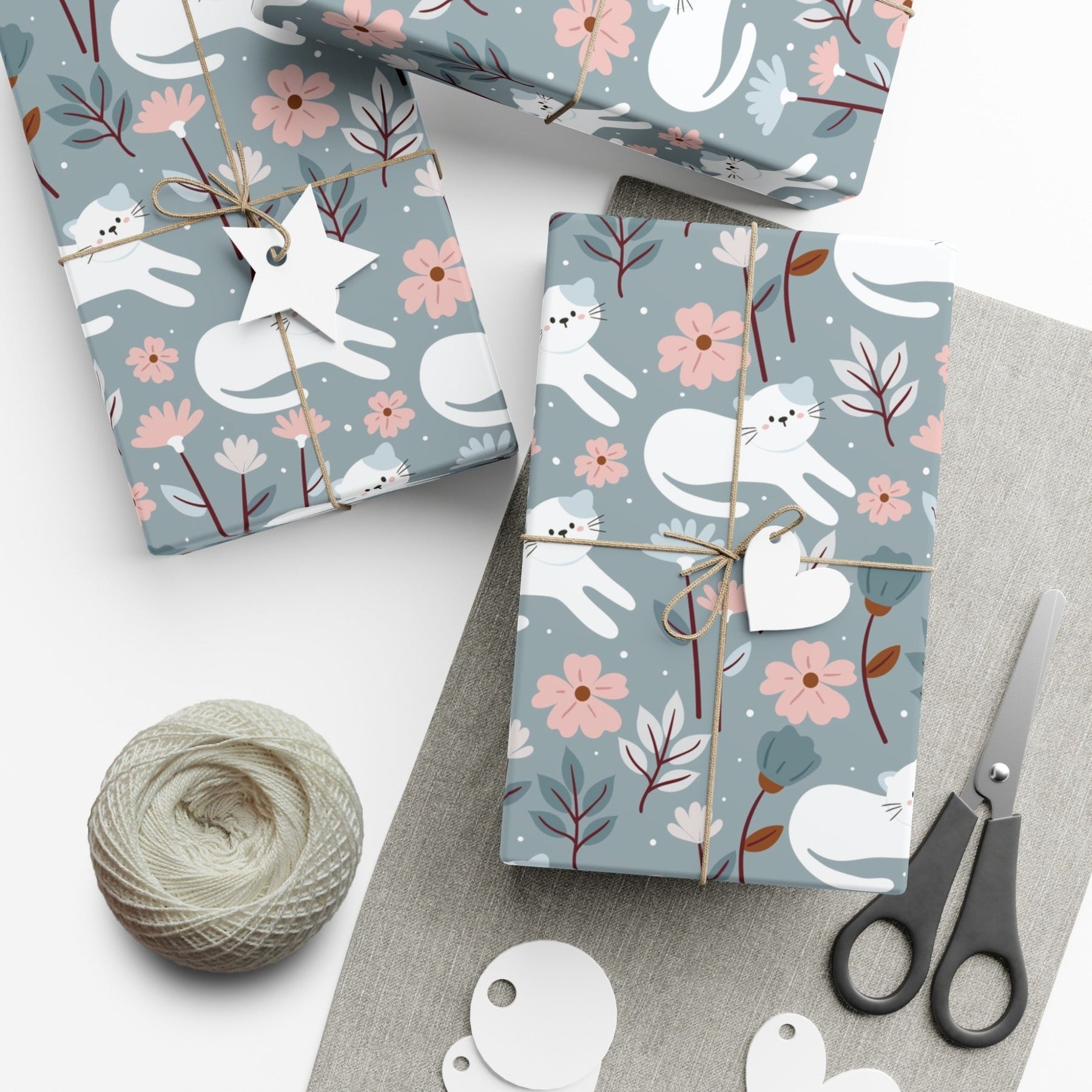 Whether you are gifting for a birthday, anniversary, or any special occasion, our Field of Flowers Cat Gift Wrap will turn your present into a symbol of affection and thoughtfulness. The unique combination of delicate flowers, whimsical cats, and soothing smoky blue hues will instantly capture the hearts of whomever receives it, creating a touch of magic before they even open their gift.